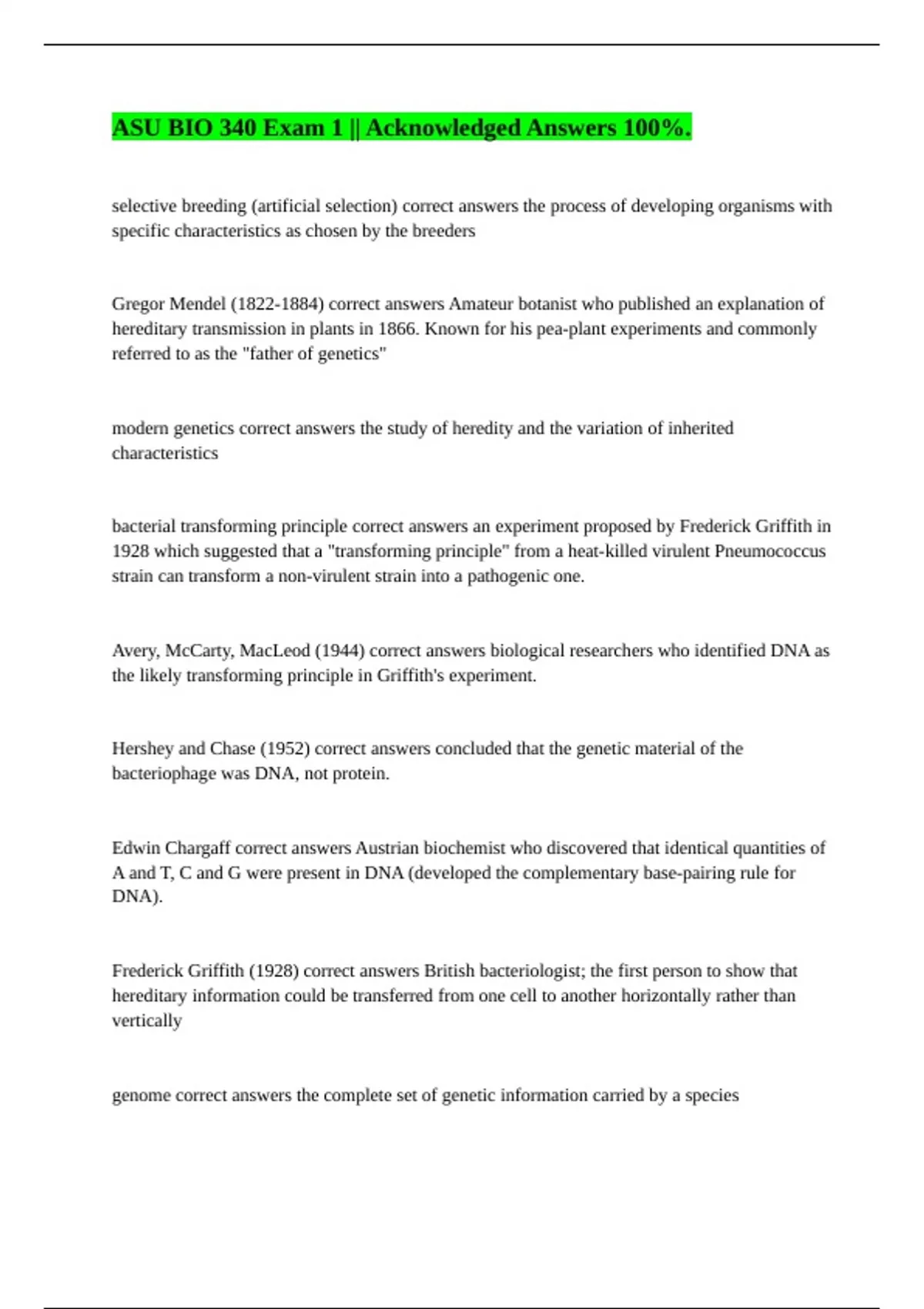 BIO 340 - Module Six || 100% Accurate Answers. Holechek Bio 340 Exam 3 || A+ Score Secured. BIO 340: Unit 1 || All Accurately Answered. BIO 340: Genetics Exam III (Mangone) || with Error-free Answers. BIO 340 VARSANI Test 3 || Errorless Answers 100%. BIO 340 UNIT 3 || with 100% Correct Answers. BIO 340 module 5 || All Solutions are Accurate. BIO 34