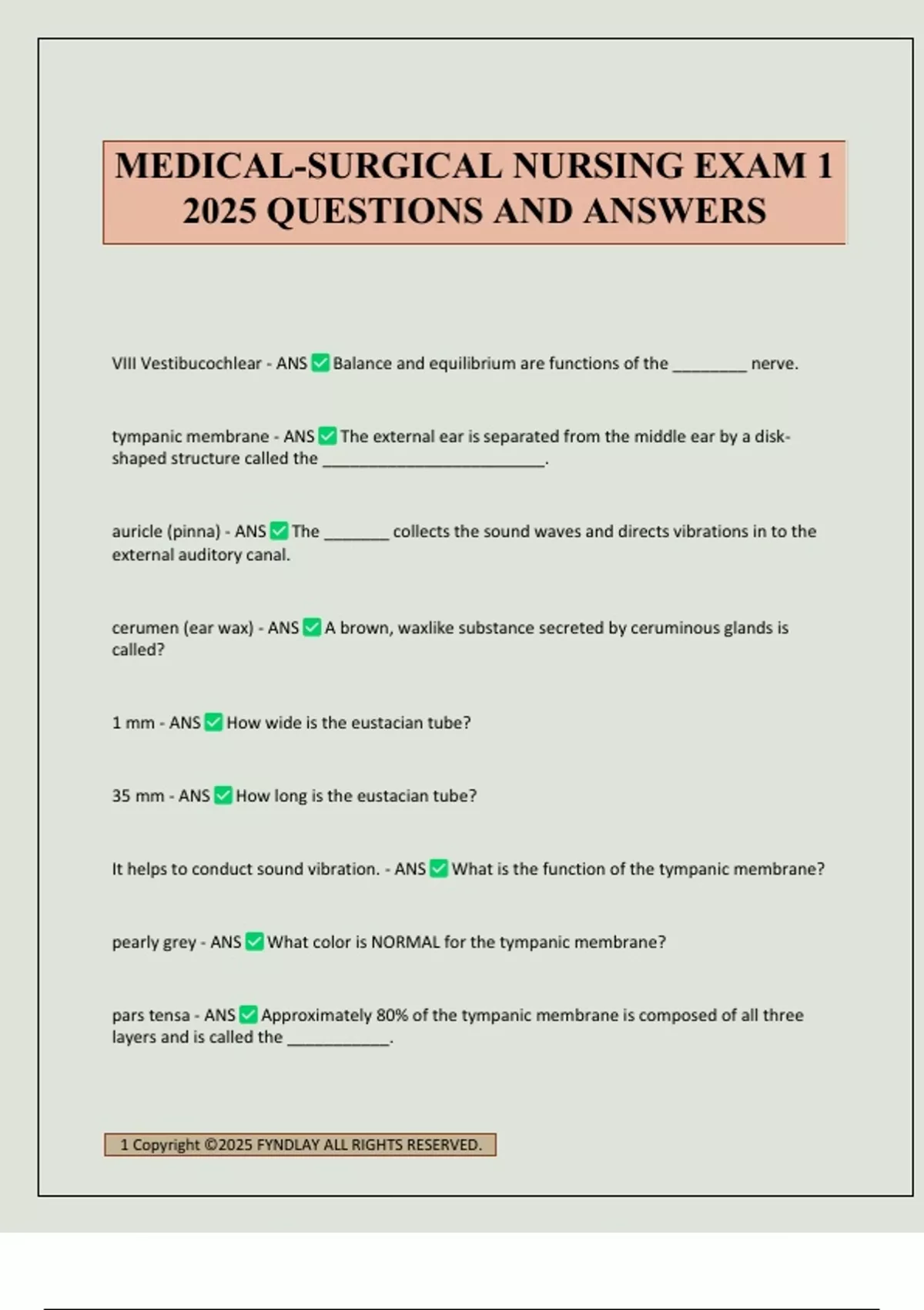 MED SURG #1 EXAM 1 2025 QUESTIONS AND ANSWERS