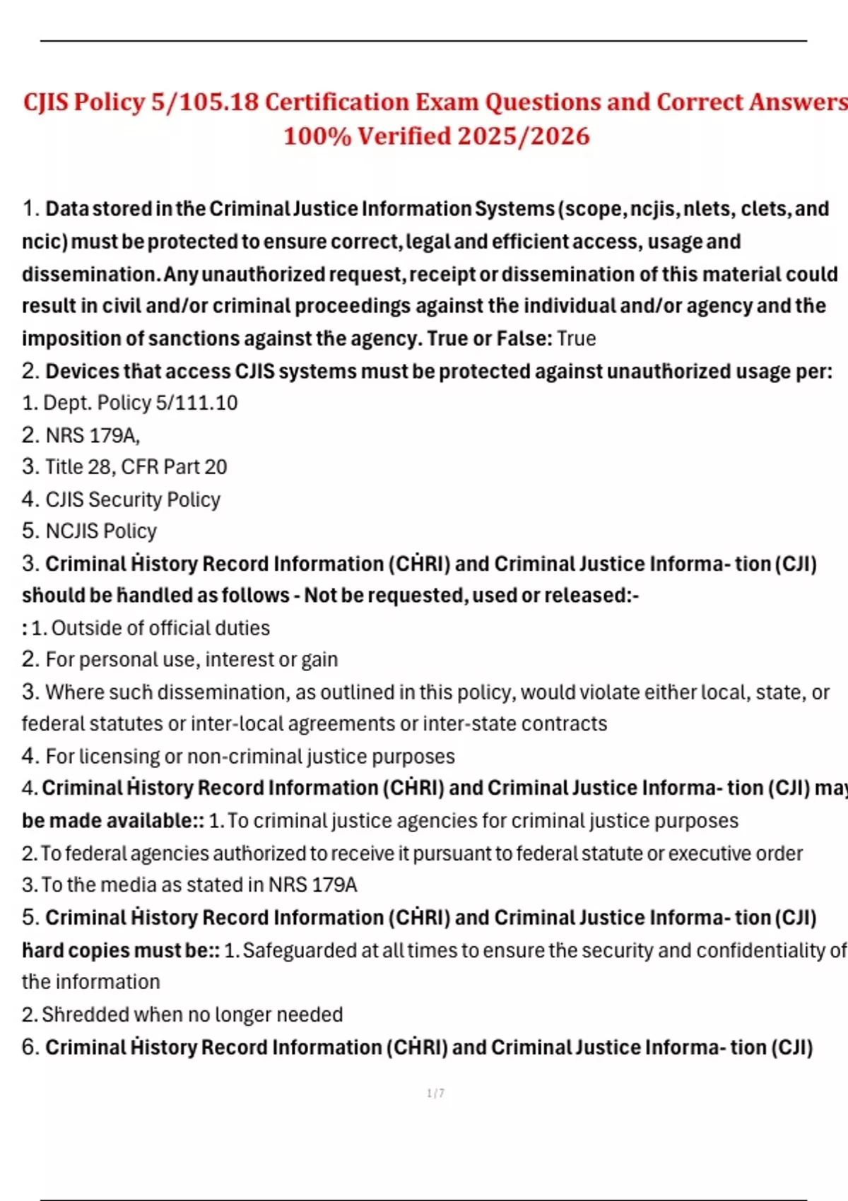 Updated CJIS Security Course – Exam Prep Questions and Correct Answers – 2025/2026 Level 2 CJIS Security Test – Exam Questions and Revised Answers – Verified 2025/2026 CJIS Security Test Exam – 100% Correct Solutions (A+ Graded) – 2025/2026 CJIS Security Awareness Test – Actual Questions and Verified Answers – 100% Guaranteed Pass (2025/2026) CJIS