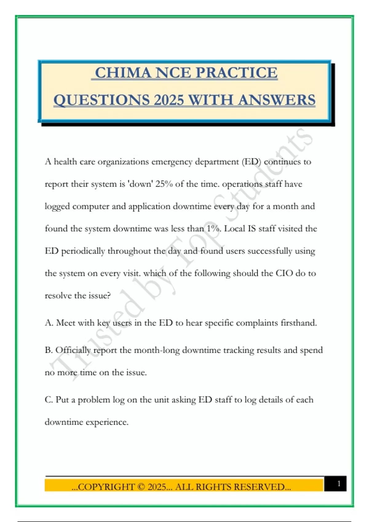 CHIMA NCE PRACTICE QUESTIONS 2025 WITH ANSWERS