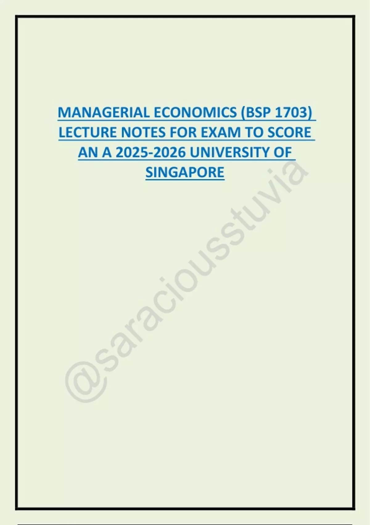 This comprehensive Managerial Economics package includes detailed lecture notes, solved exam questions, case study solutions, and key definitions. Covers topics such as demand analysis, production and cost theory, market structures, pricing strategies, and game theory. Ideal for exam prep and coursework across undergraduate and MBA-level managerial