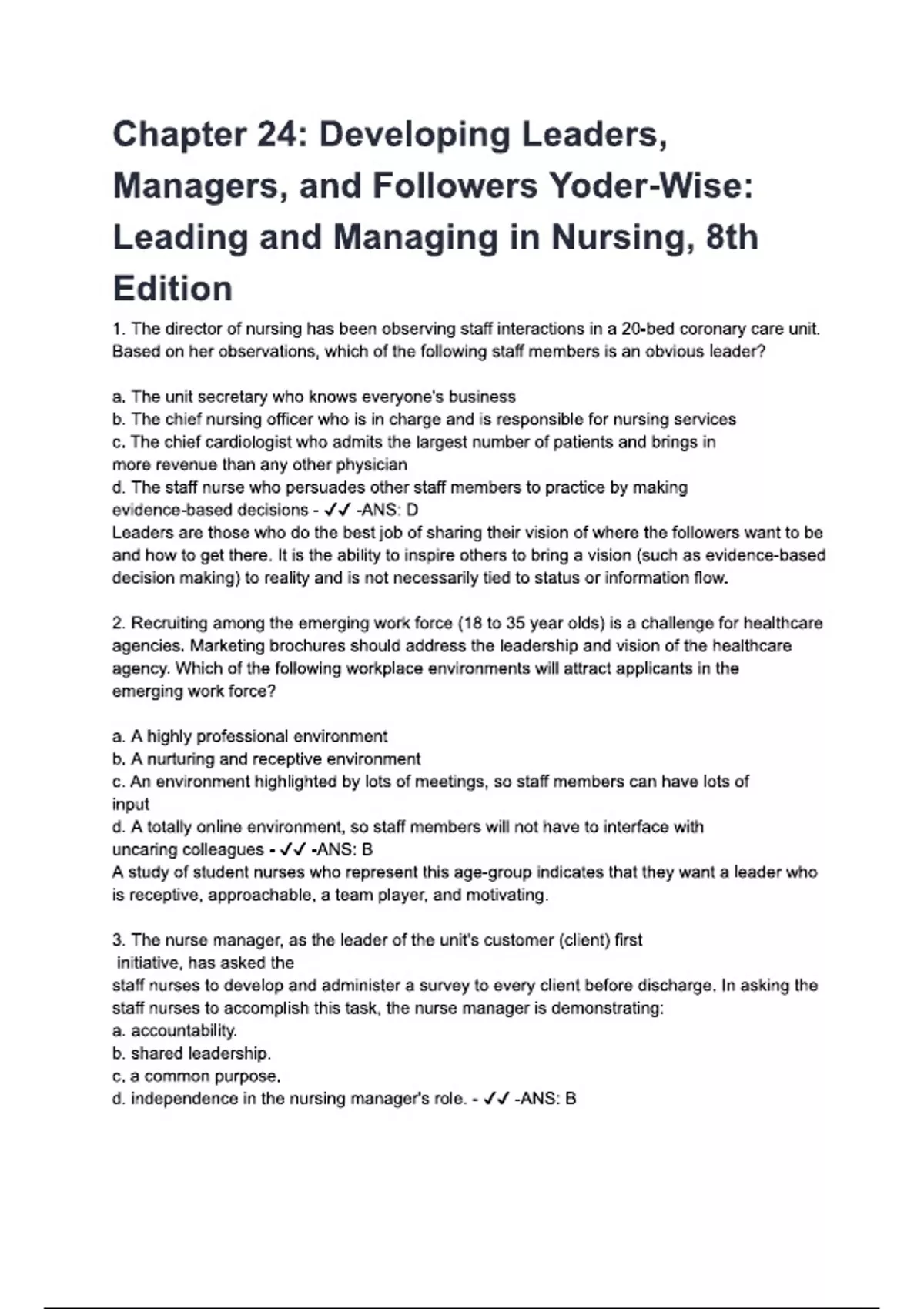 Developing Leaders, Managers, and Followers Yoder-Wise Chapter 24 (NEW 2025/ 2026 UPDATE) QUESTIONS AND ANSWERS