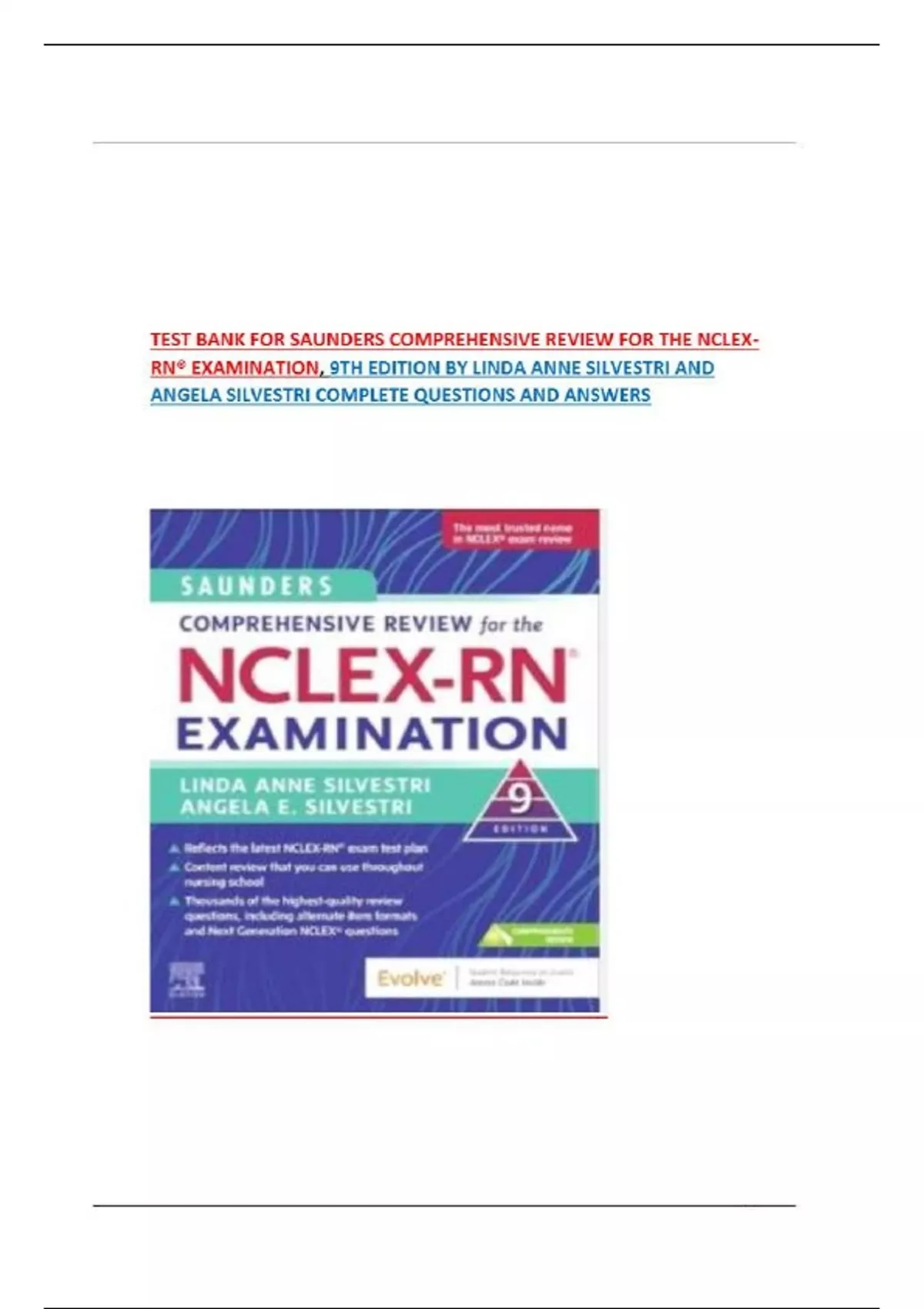 TEST BANK FOR SAUNDERS COMPREHENSIVE REVIEW FOR THE NCLEX-RN® EXAMINATION, 9TH EDITION BY LINDA ANNE SILVESTRI AND ANGELA SILVESTRI COMPLETE QUESTIONS AND ANSWERS