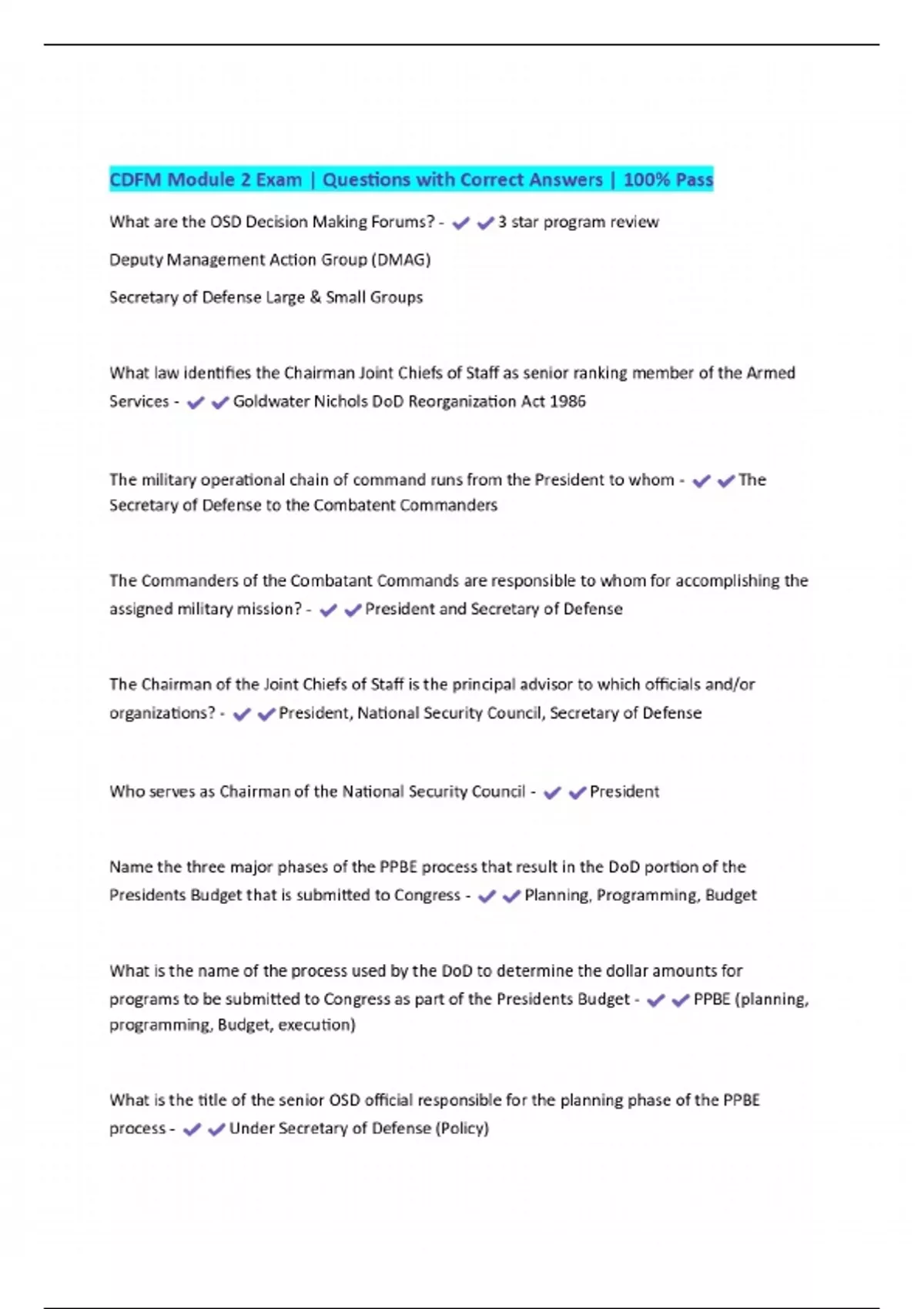 CDFM EXAMS BUNDLE PACKAGE:::::Questions with Complete Solutions | Verified