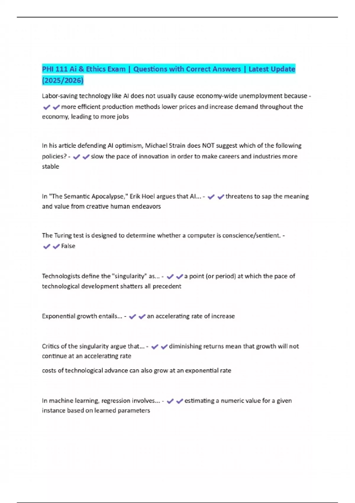 PHI 111 EXAMS BUNDLE PACKAGE:::::Questions with Complete Solutions | Verified