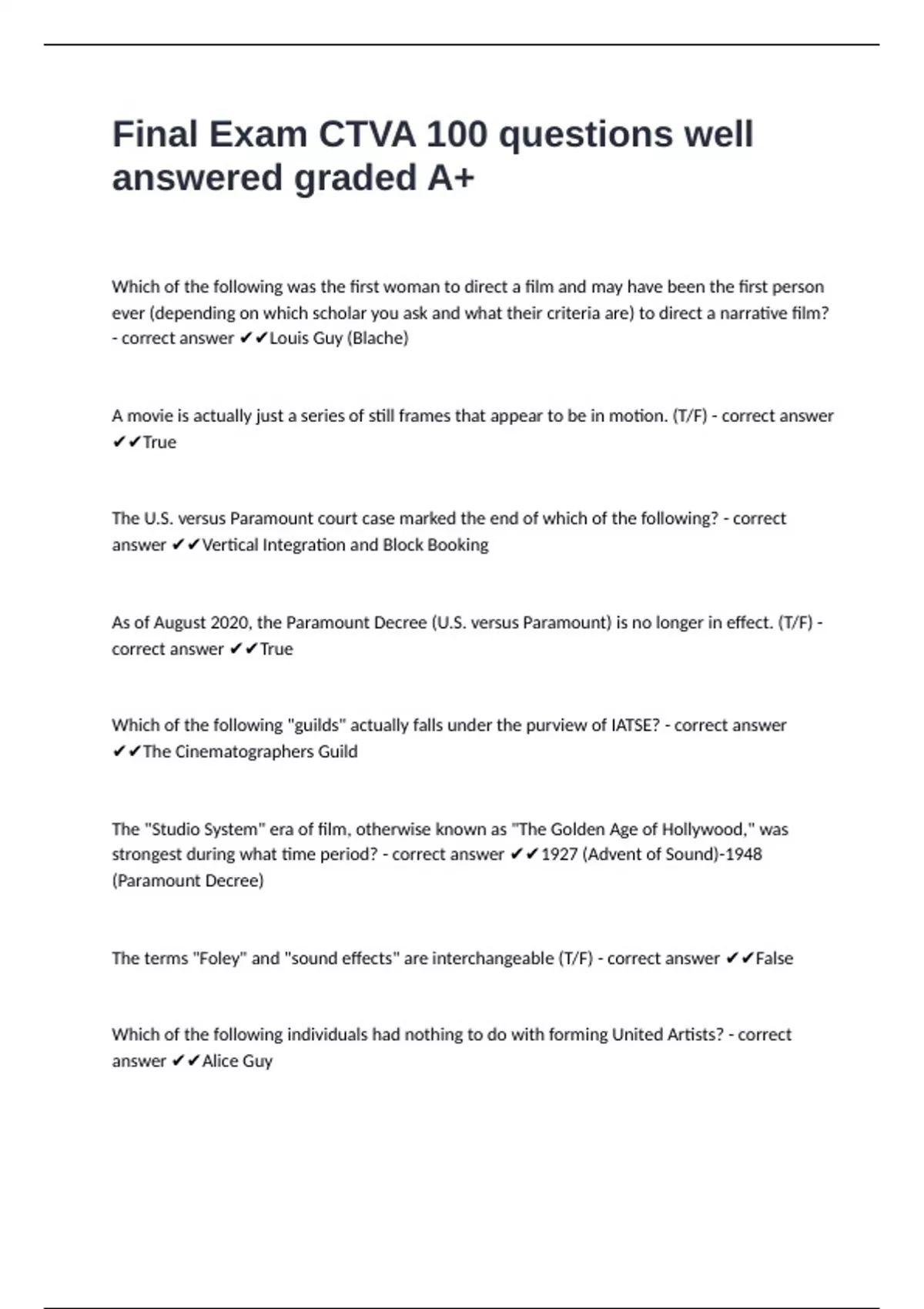 1 Exam (elaborations) CSUF CTVA 100 Exam 2 questions with verified answers 2 Exam (elaborations) CTVA 100 Exam 1 questions well answered graded A+ 3 Exam (elaborations) CTVA 100 Exam 2 (chapter 5) questions and answers graded A+