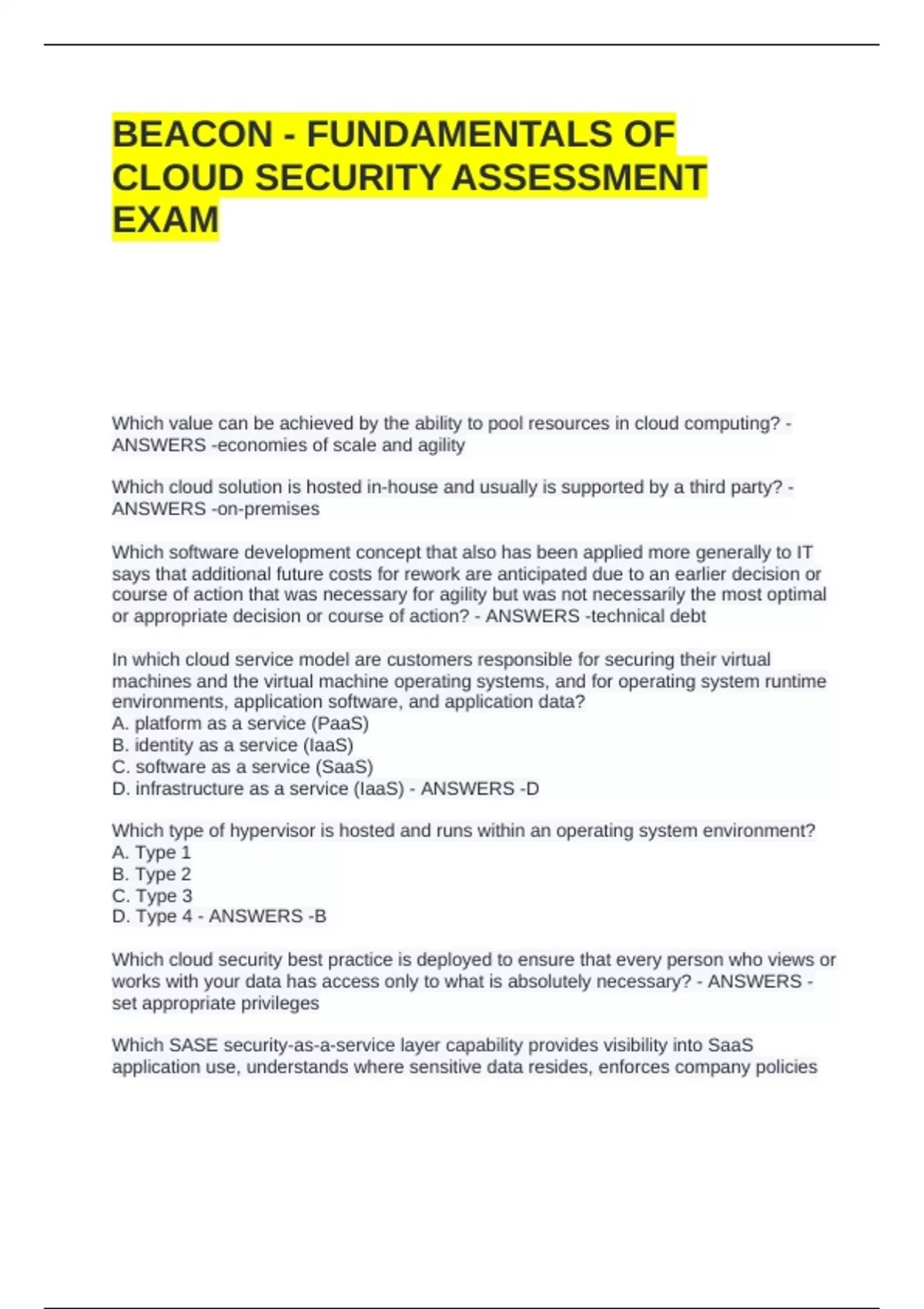 BEACON BUNDLED EXAM WITH COMPLETE SOLUTIONS