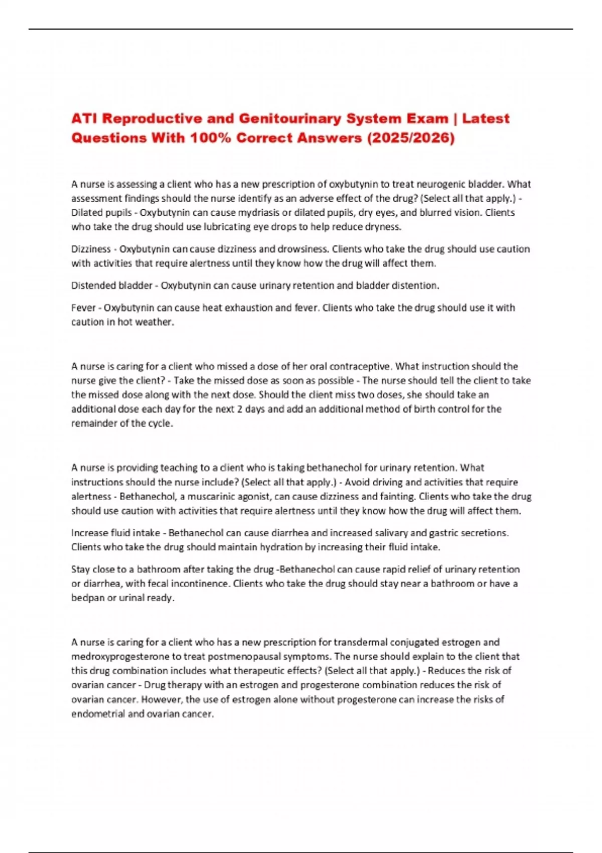 BUNDLE FOR ATI Reproductive and Genitourinary System Exams: Complete Q&A with Verified Solutions- 2025/2026