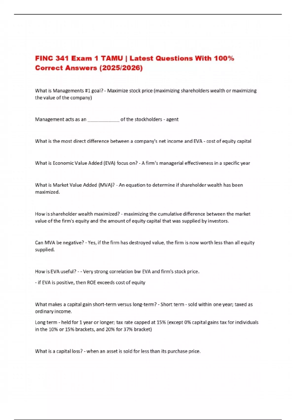 BUNDLE FOR FINC 341 Exams with Verified Solutions- 2025/2026