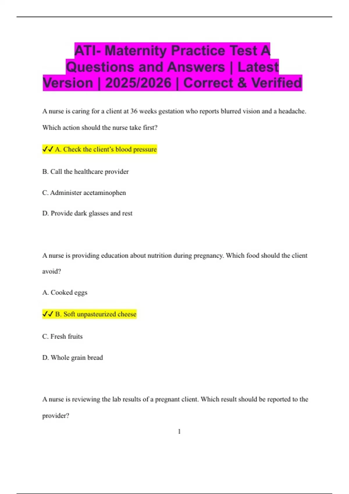 ATI- Maternity Bundled Exams Questions and Answers Latest Versions (2025/2026) (Complete and Accurate)