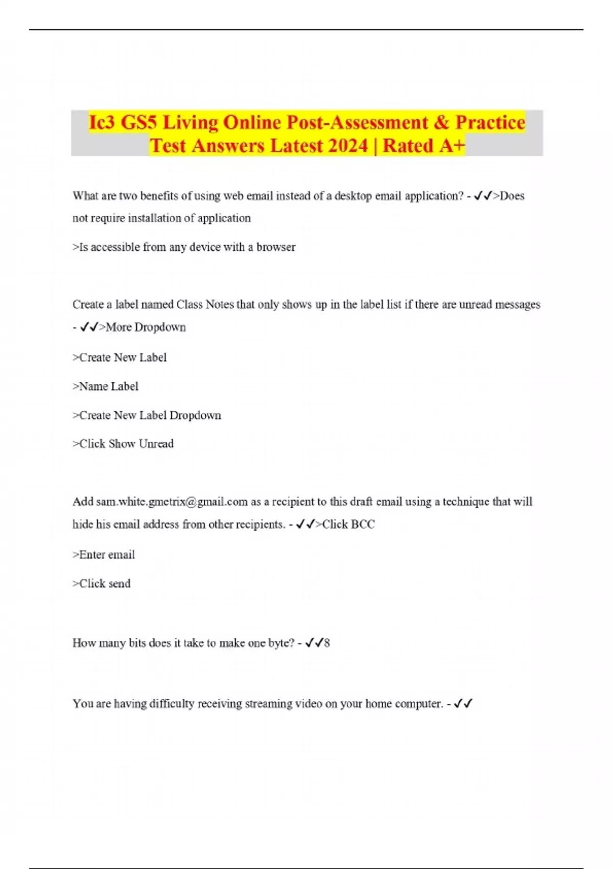 BUNDLE FOR IC3 GS5 Living Online Exams with Verified Solutions- 2025/2026