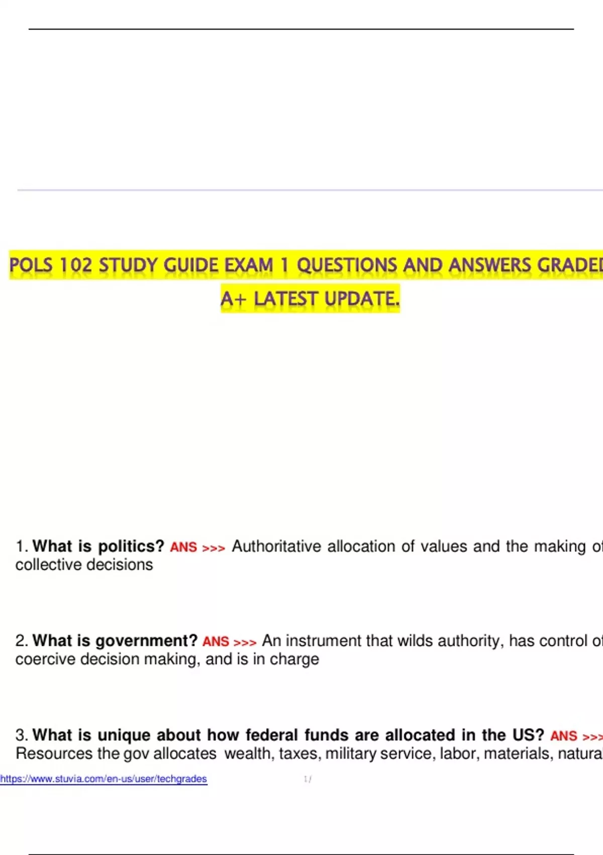 POLS 102 FINAL EXAM QUESTIONS AND ANSWERS GRADED A+ LATEST UPDATE. POLS-102 EXAM GRADED A+ LATEST UPDATE. POLS 102 FINAL EXAM QUESTIONS AND ANSWERS LATEST UPDATE. POLS 102 STUDY GUIDE EXAM 1 QUESTIONS AND ANSWERS GRADED A+ LATEST UPDATE.