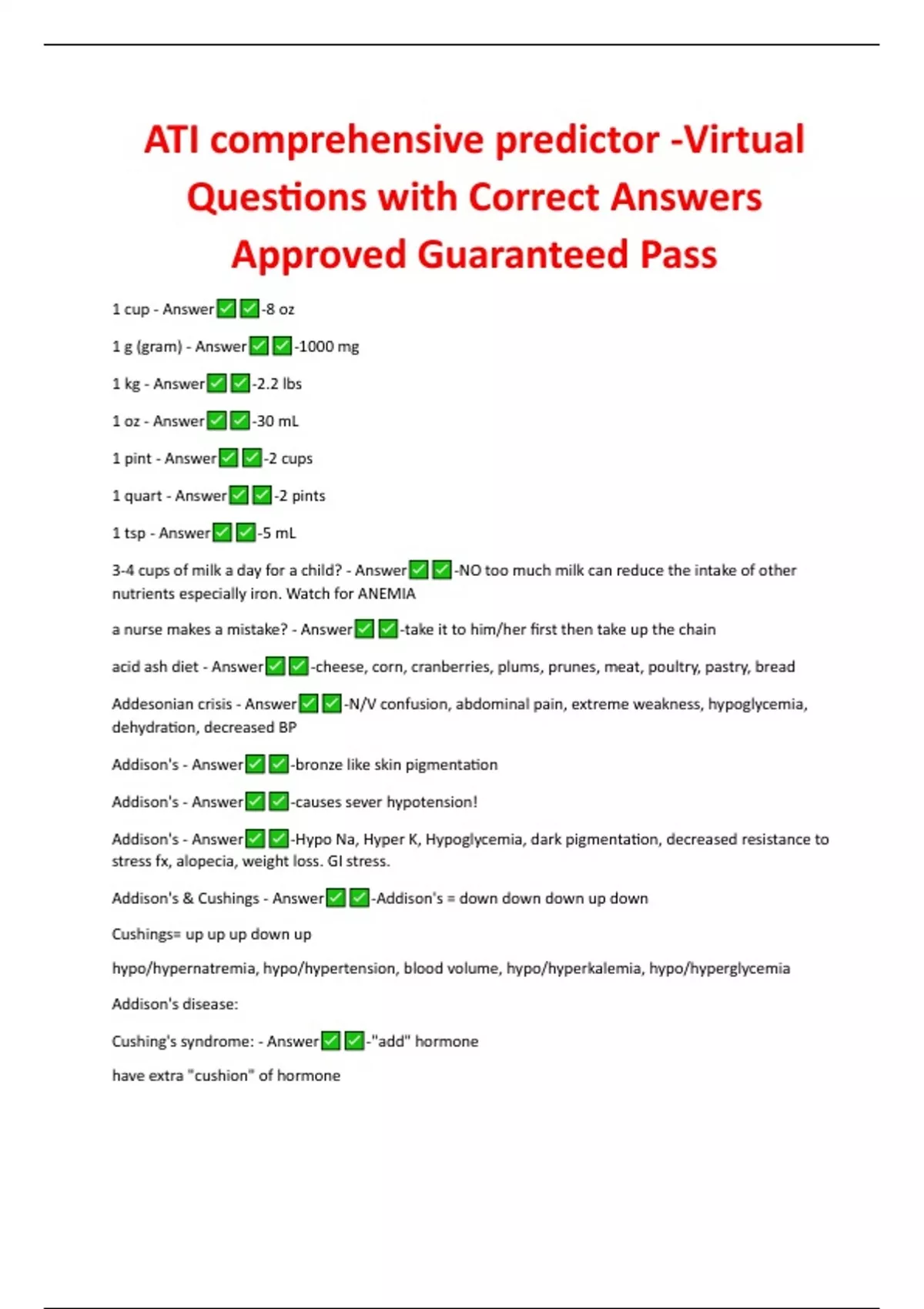 ATI comprehensive predictor -Virtual Questions with Correct Answers Approved Guaranteed Pass
