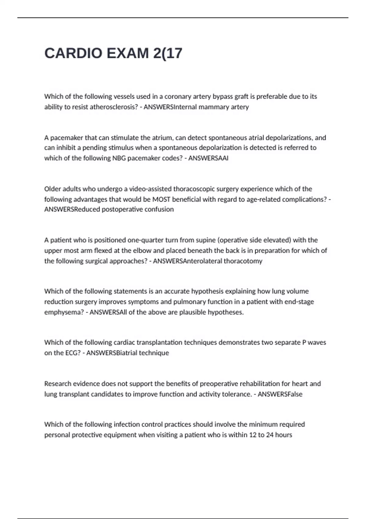 CARDIO EXAM 2 QUESTIONS AND ANSWERS GRADE A+