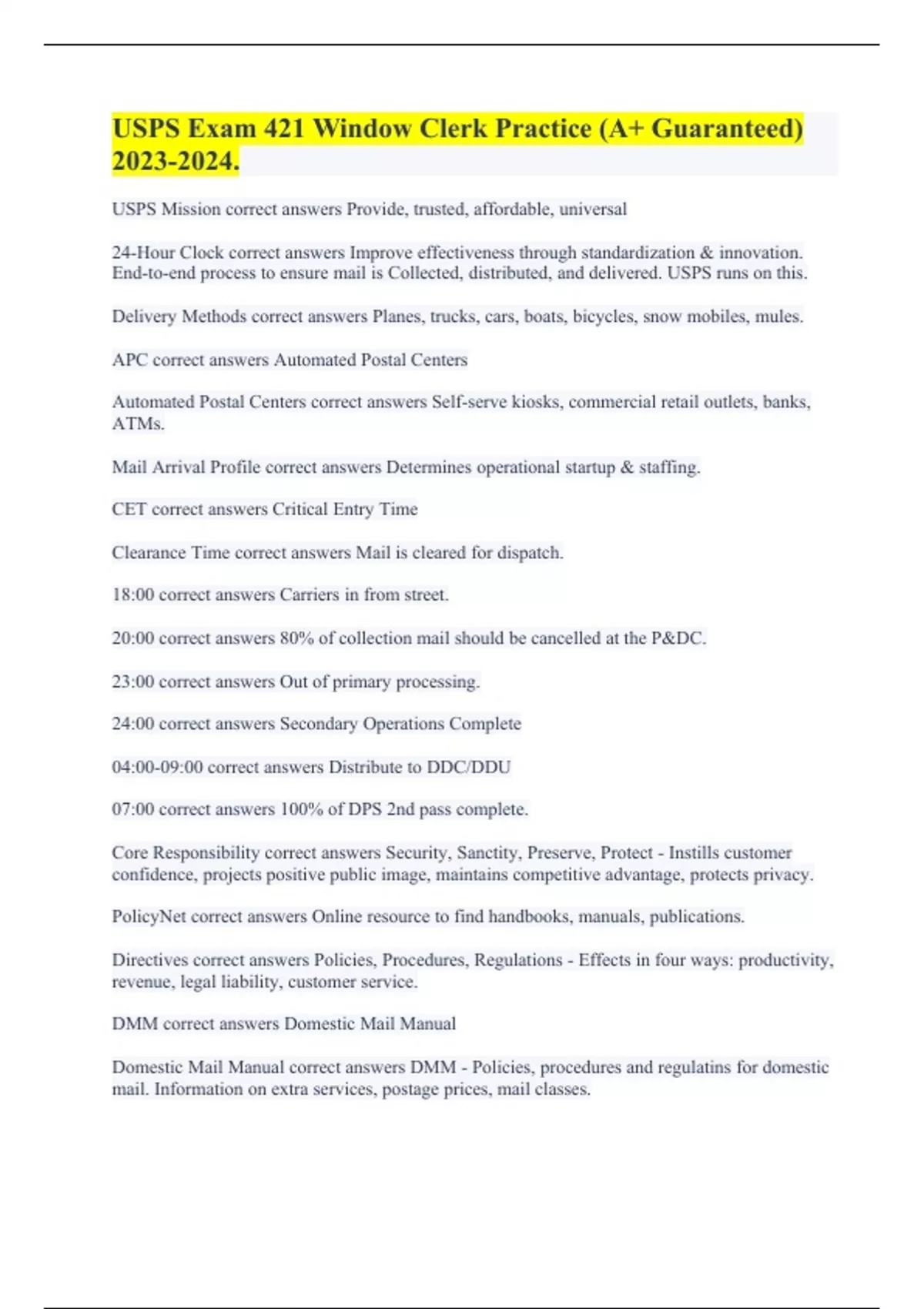 USPS Exam 421 Window Clerk Practice (A+ Guaranteed) . USPS || All Solutions are Accurate. USPS Exam 421 SSA Academy || Graded A+. USPS Window Academy Exam Study Guide || Answered Perfectly 100%. USPS WINDOW CLERK TEST (100% ERROR-FREE ANSWERS) USPS SSA ACADEMY 421 EXAM || ALL SOLVED. USPS SSA Academy || All Accurately Answered. USPS Sales
