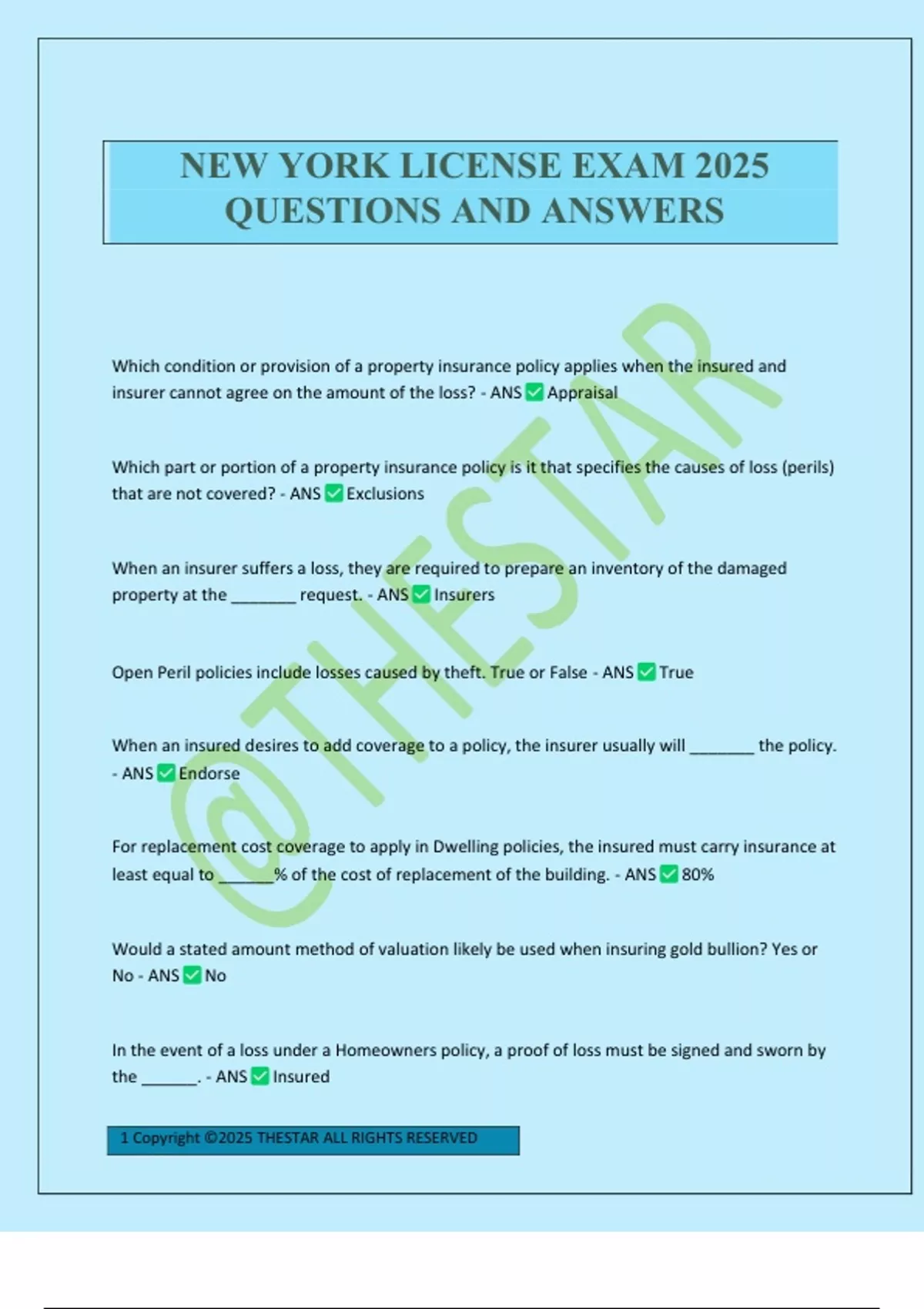 NEW YORK INSURANCE EXAM 2025 QUESTIONS AND ANSWERS