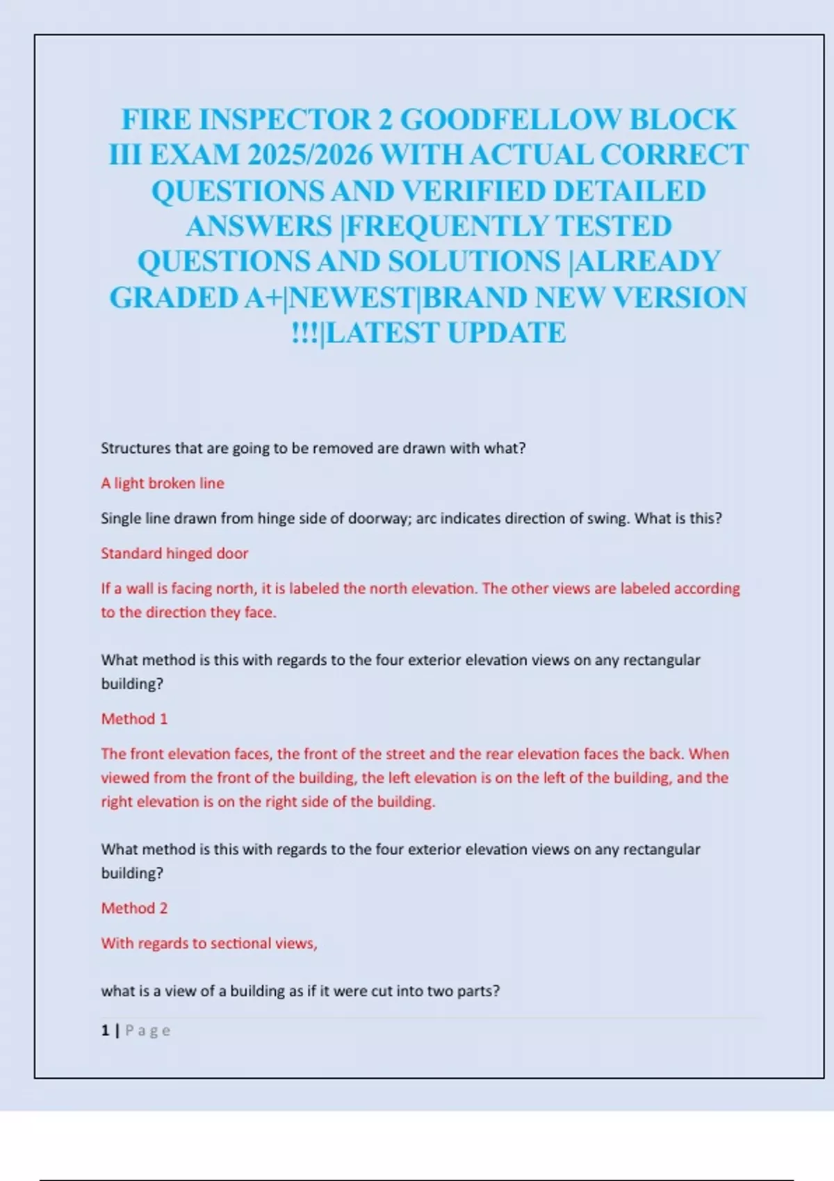 FIRE INSPECTOR 2 GOODFELLOW BLOCK EXAM 2025/2026 WITH ACTUAL CORRECT QUESTIONS AND VERIFIED DETAILED ANSWERS |FREQUENTLY TESTED QUESTIONS AND SOLUTIONS |ALREADY GRADED A |NEWEST|BRAND NEW VERSION !!!|LATEST UPDATE