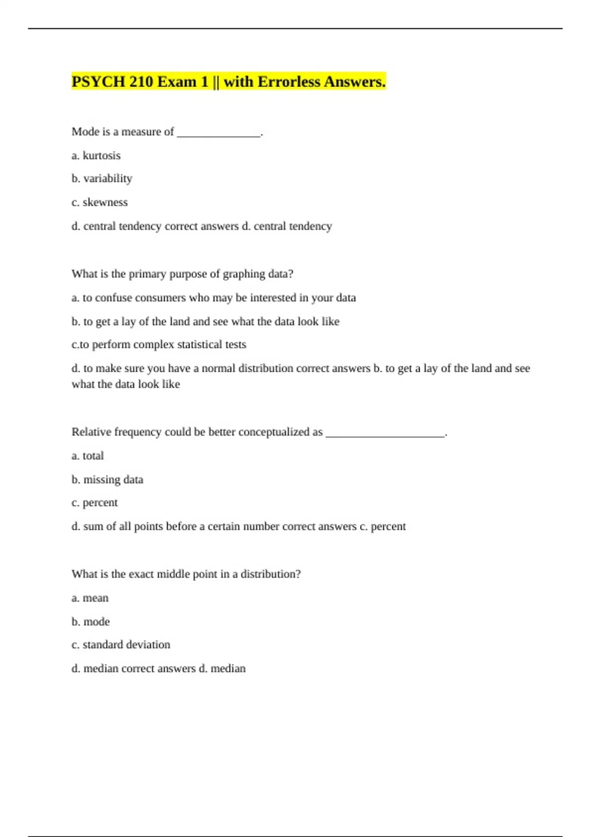 Psychology 210: Chapter 1 Quiz || Get it Correct. Psych 210 || A+ Score Secured. PSYCH 210 Exam 1 || with Errorless Answers. Psych 210 Uvic Exam 2 H-N (In Class & Video Quizzes) || Detailed Answers. Stats - Psych 210: Exam #1 || with Errorless Answers. UVIC Psych 210 Exam 1 || Errorless Answers 100%. UW Psych 210 exam 1 || All Answers are Valid. WS