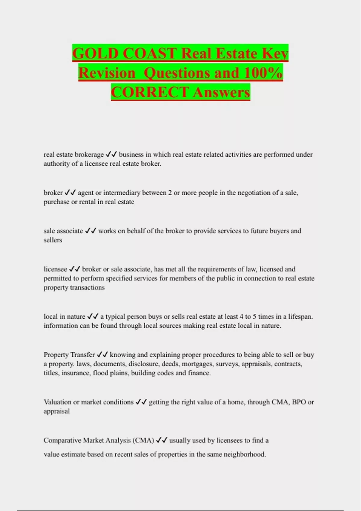 Gold Coast Bundled Exam Questions WITH CORRECT Answers