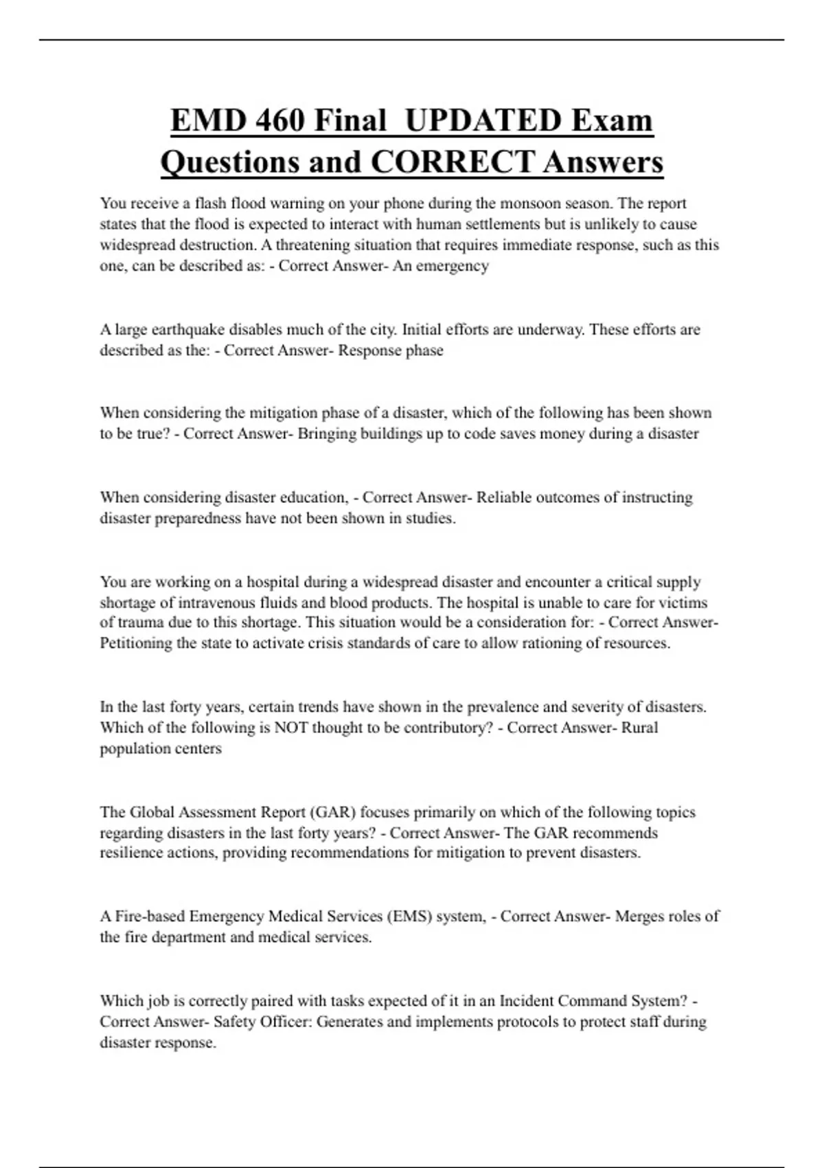 EMD Bundled Exam Questions WITH CORRECT Answers