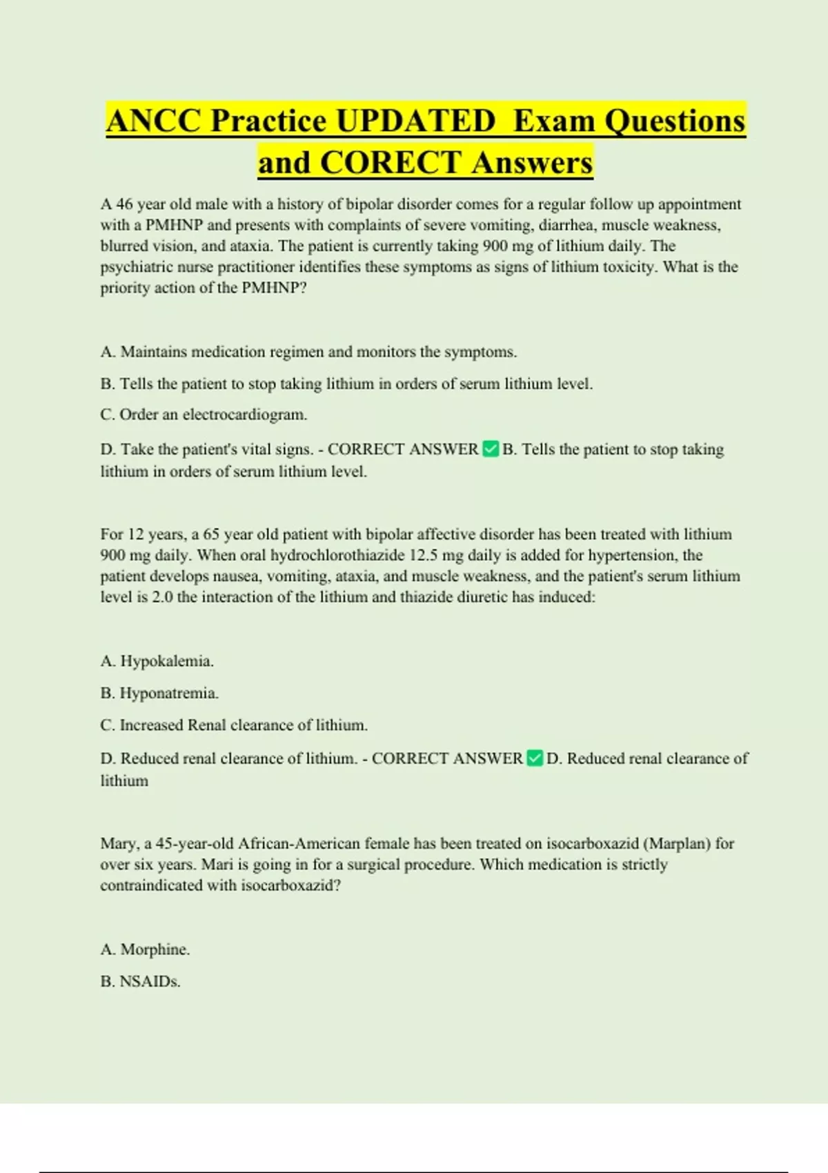 ANCC Practice UPDATED ACTUAL Exam Questions and CORECT Answers