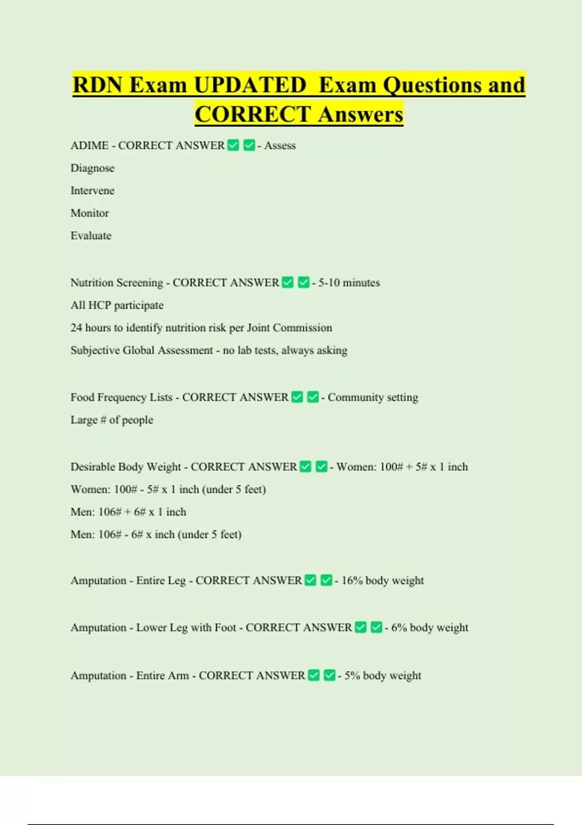 RDN Exam ACTUAL UPDATED Exam Questions and CORRECT Answers