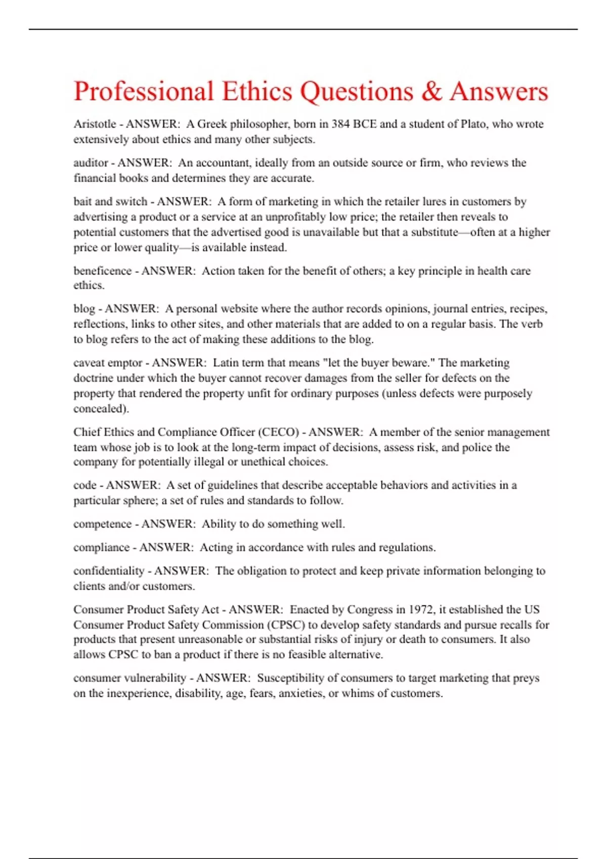 Professional Ethics Questions & Answers