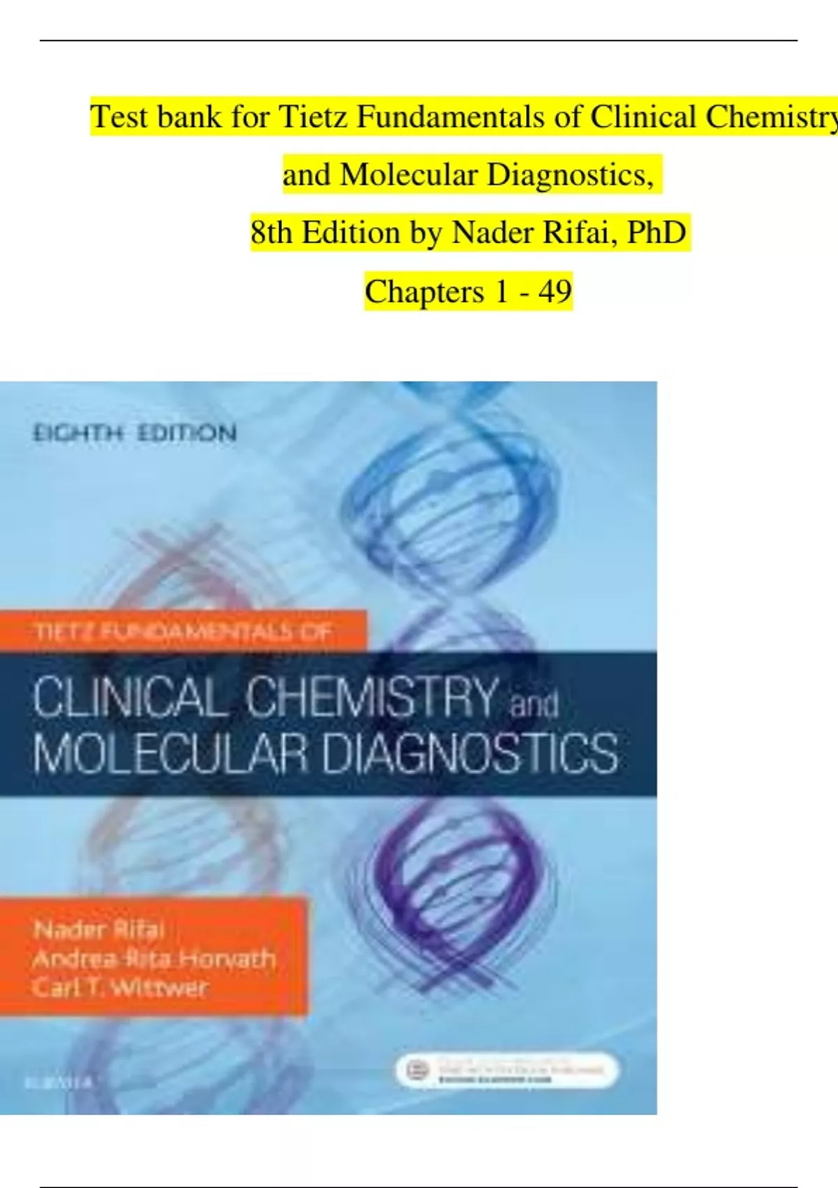 Test bank for Tietz Fundamentals of Clinical Chemistry and Molecular Diagnostics, 8th Edition by Nader Rifai, PhD Chapters 1 - 49