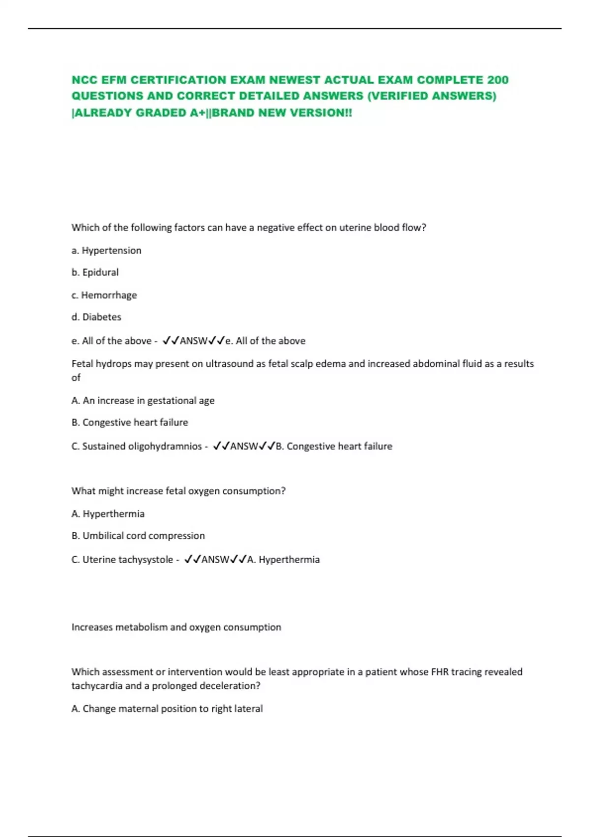 NCC Electronic Fetal Monitoring Certification Exam Questions and Answers (2023/2024) (Verified Answers)