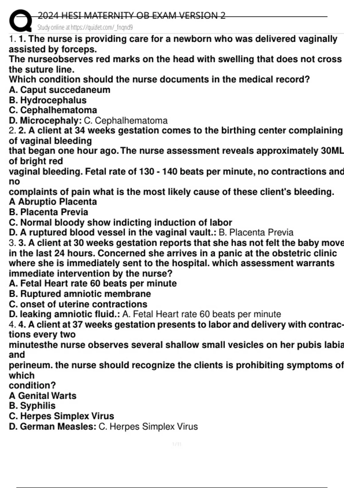 HESI MATERNITY OB EXAMS-REAL ACTUAL EXAM-LATEST EXAMS 2025-COMPLETE Q&A -GUARANTEED PASS!! GRADED A+