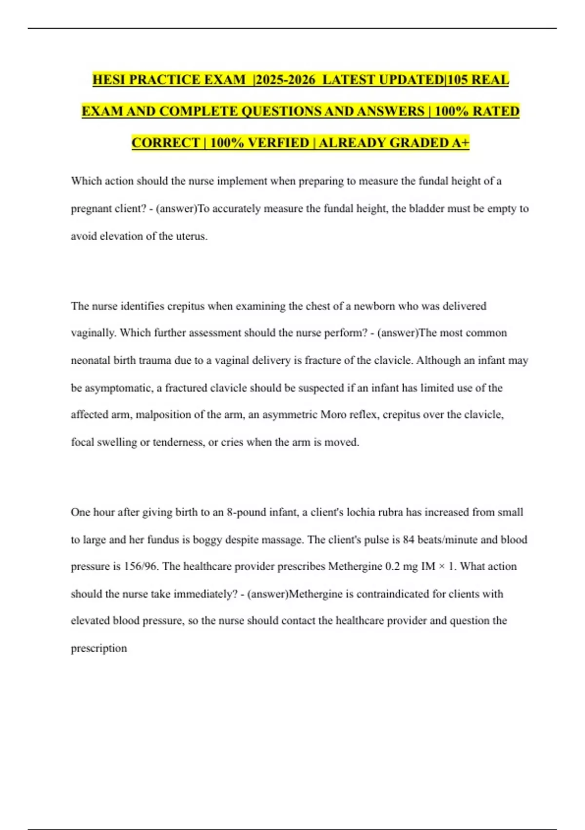 PACKAGE DEAL FOR HESI PRACTICE EXAM | LATEST UPDATED | REAL EXAM AND COMPLETE QUESTIONS AND ANSWERS | 100% RATED CORRECT | 100% VERFIED | ALREADY GRADED A |5 ITEMS