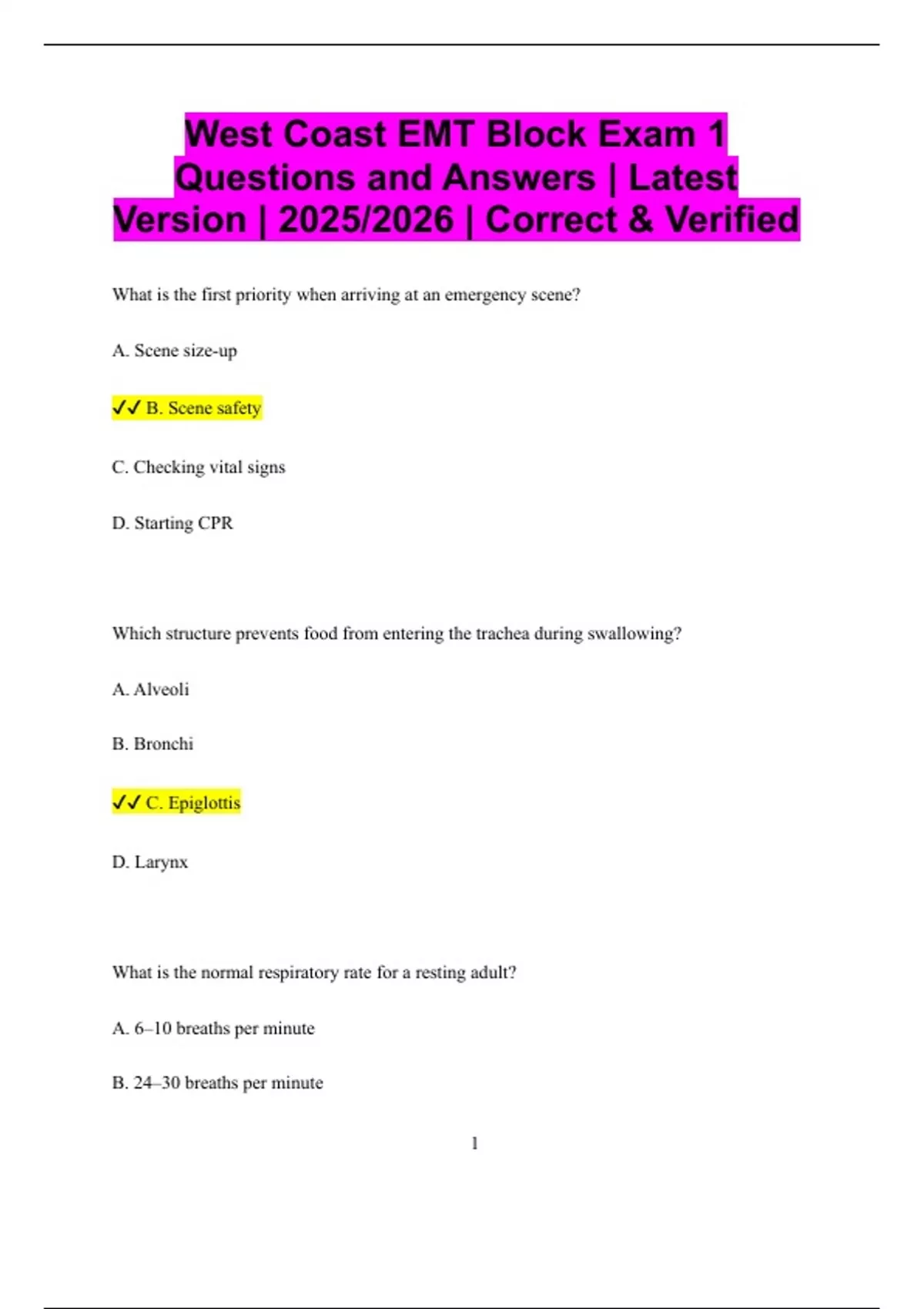 West Coast EMT Block 1,2,3,&4 Bundled Exams Questions and Answers Multiple Versions Latest Updates (2025/2026) (Complete, Accurate, and Verified)