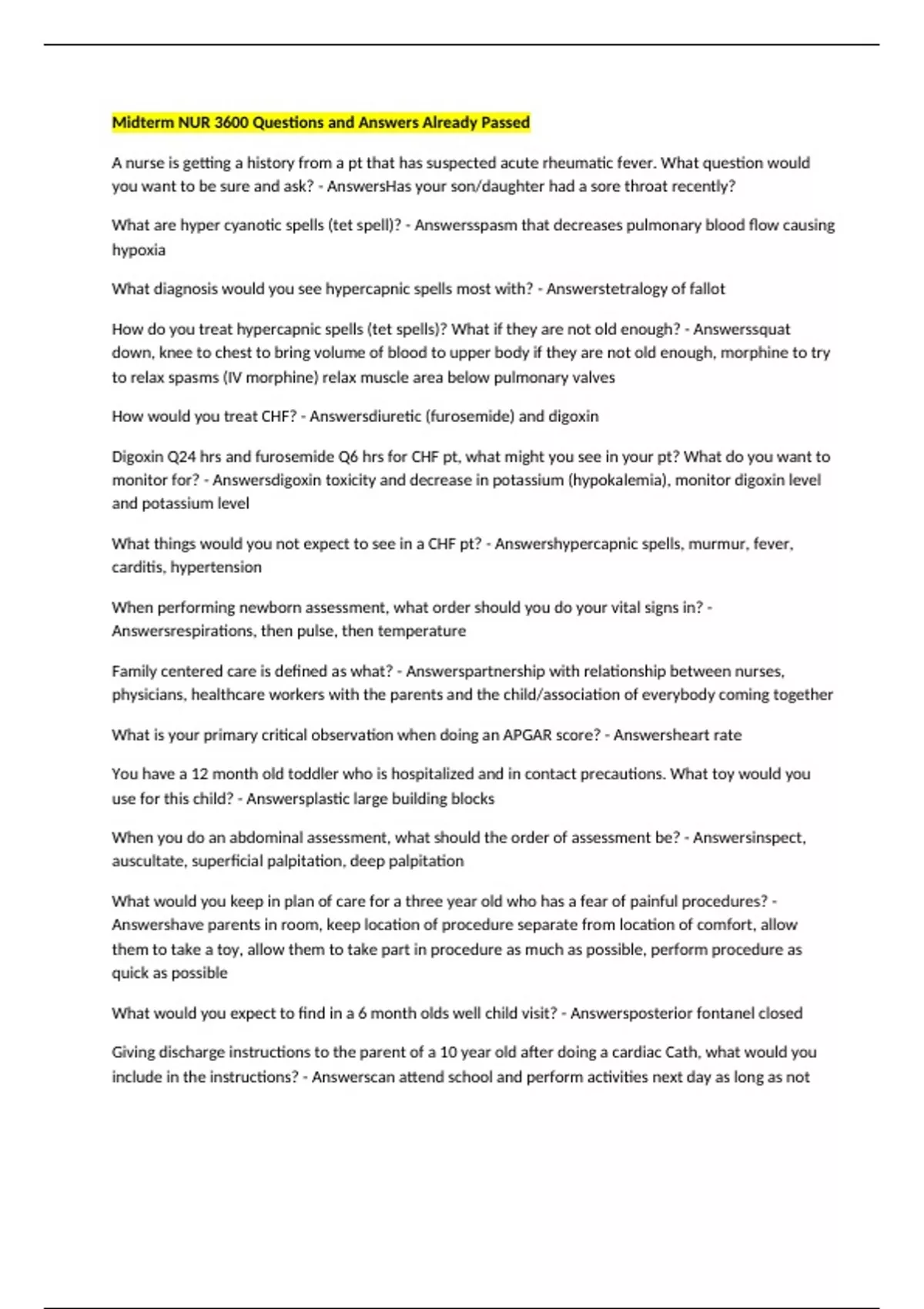 NUR 3600 Bundled Questions and Answers Fully Solved Latest Version 2025/2026