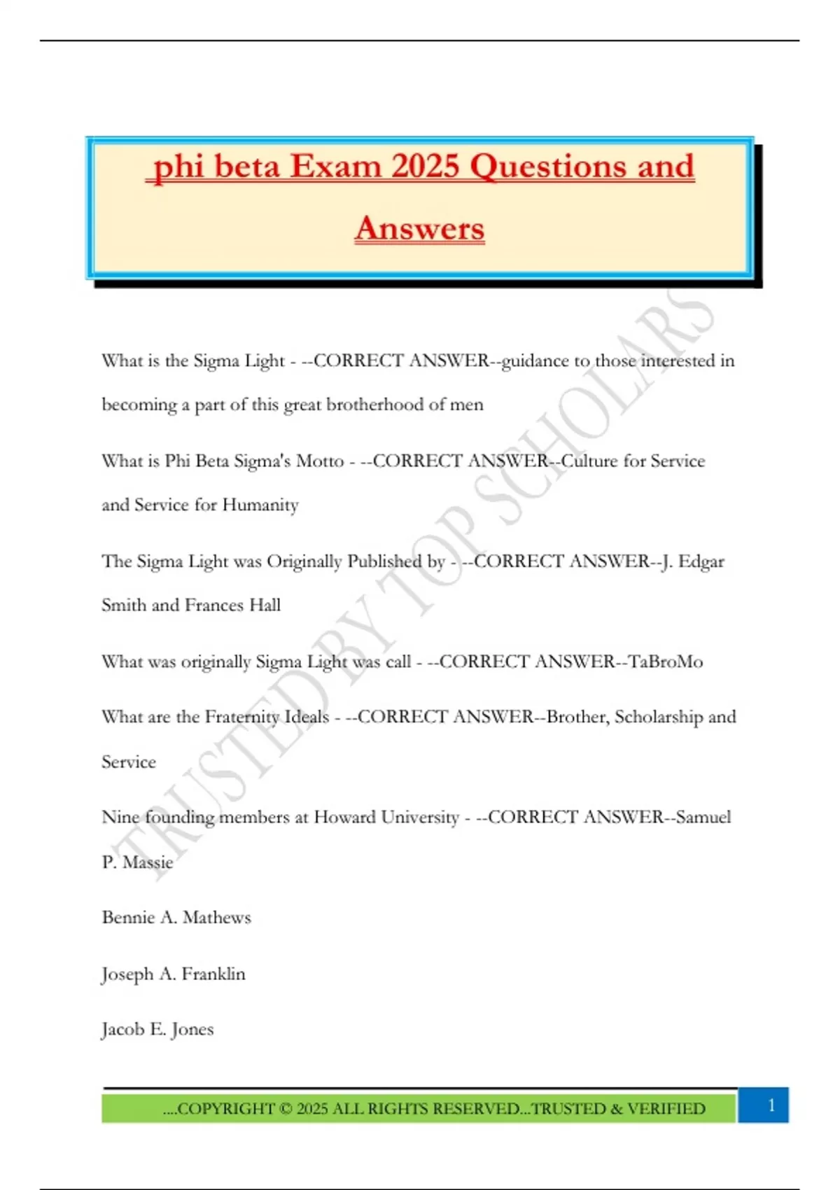 Phi Beta Sigma Exam 2025 Questions and Answers