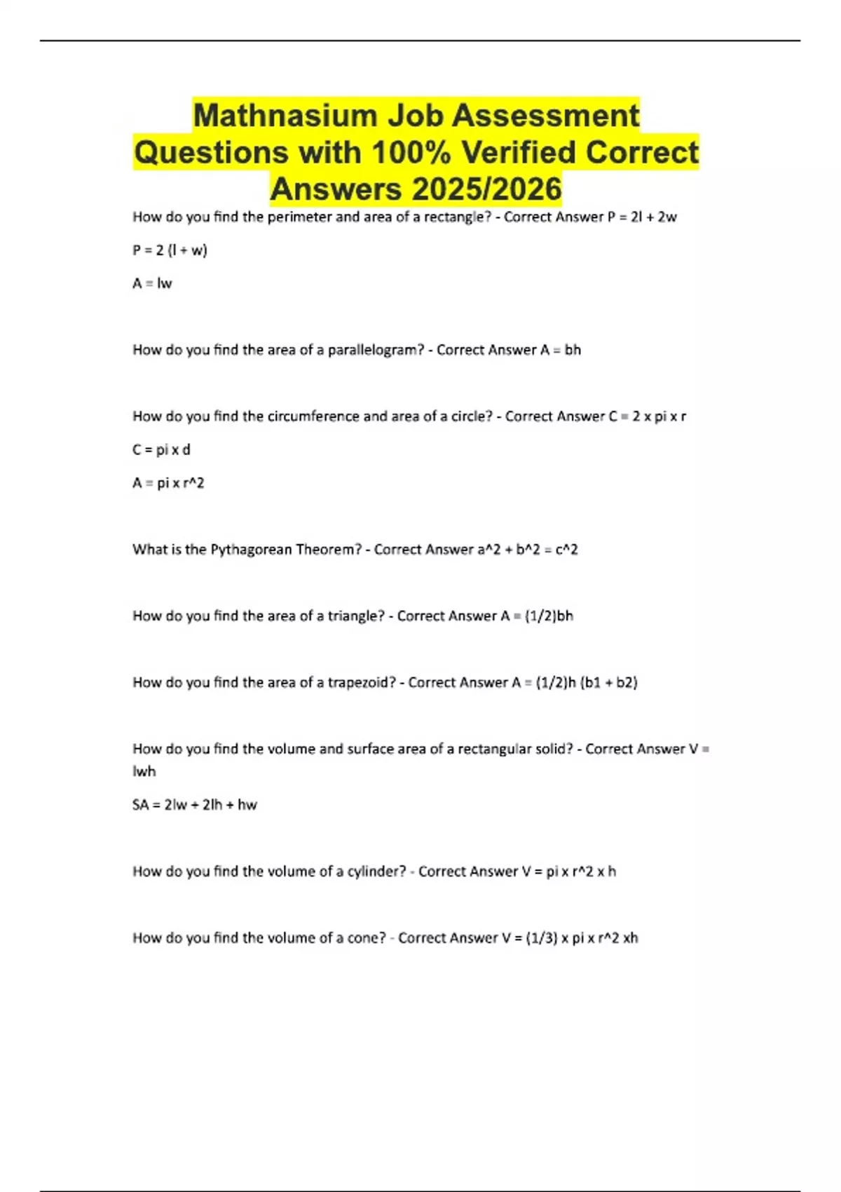 Mathnasium Job Assessment Questions with 100% Verified Correct Answers 2025/2026, Mathnasium - Math Literary Test Questions with Correct Answers and Mathnasium Training Exam Study Guide with Complete Solutions 2025/2026