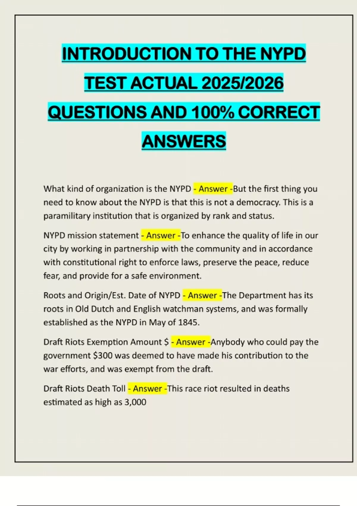 PACKAGE DEAL::: NYPD EXAMS 2025/2026 QUESTIONS AND 100% CORRECT ANSWERS