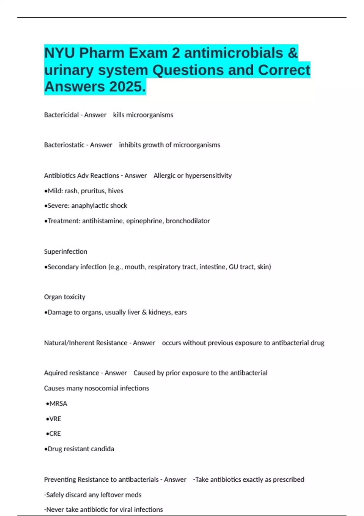 NYU Pharmacology Final Exam Package Deal Bundle Updated !!