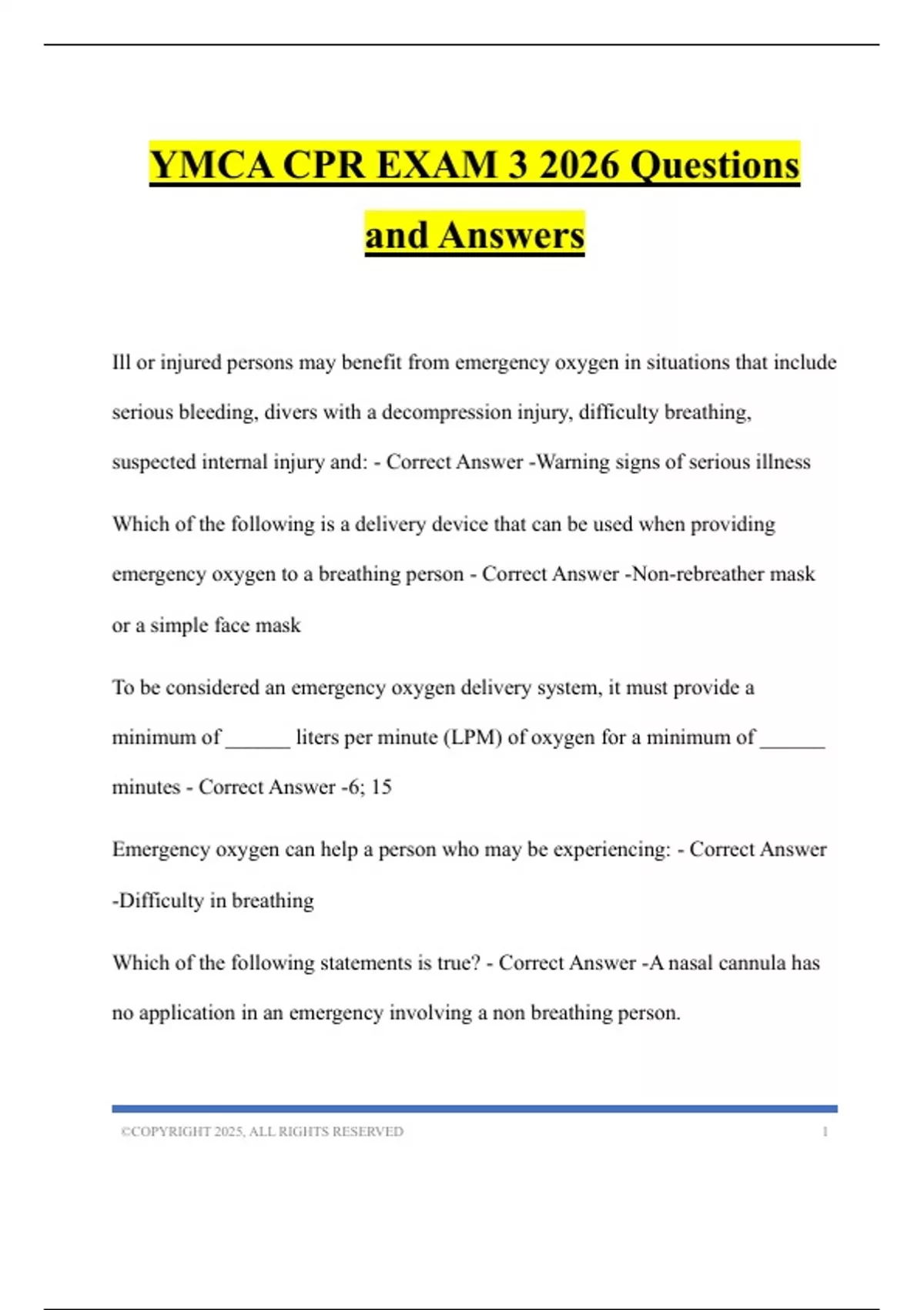 YMCA CPR Bundled Tests 2026 Questions and Answers