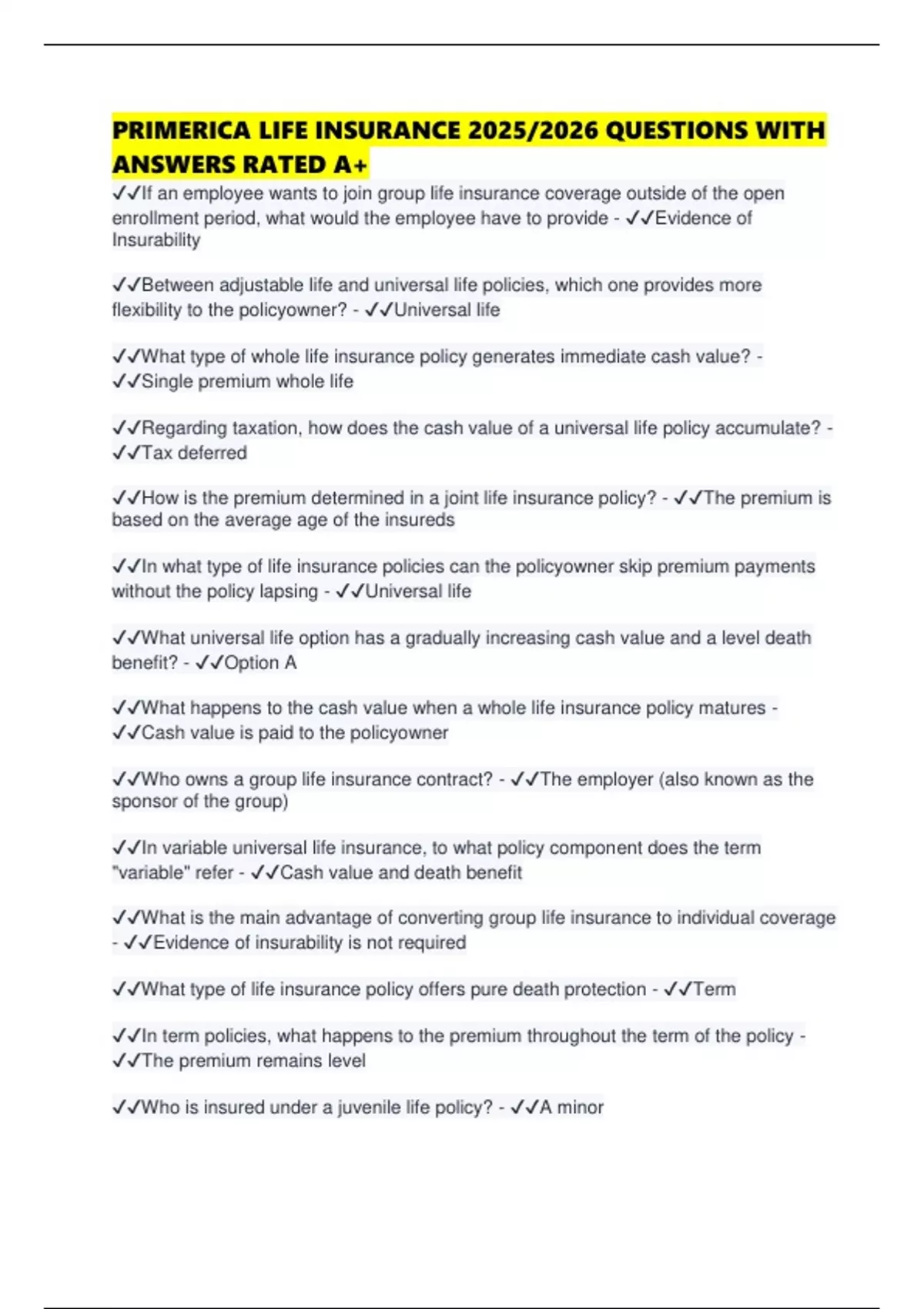 PRIMERICA LIFE INSURANCE 2025/2026 PRIMERICA LIFE INSURANCE 2025/2026