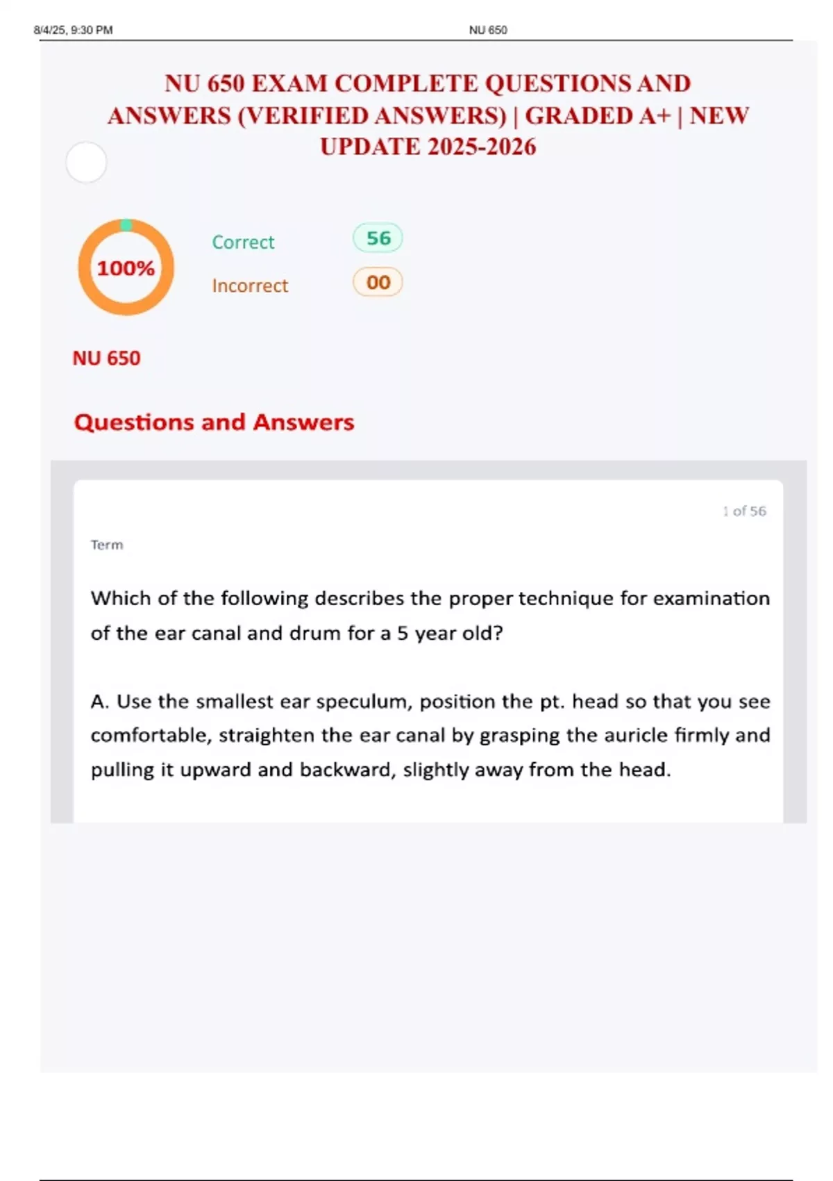 NU 650 EXAM BUNDLED ACTUAL QUESTIONS AND ANSWERS WITH COMPLETE SOLUTIONS 100% CORRECT | WELL ILLUSTRATED | ALREADY GRADED A+ | NEW UPDATE