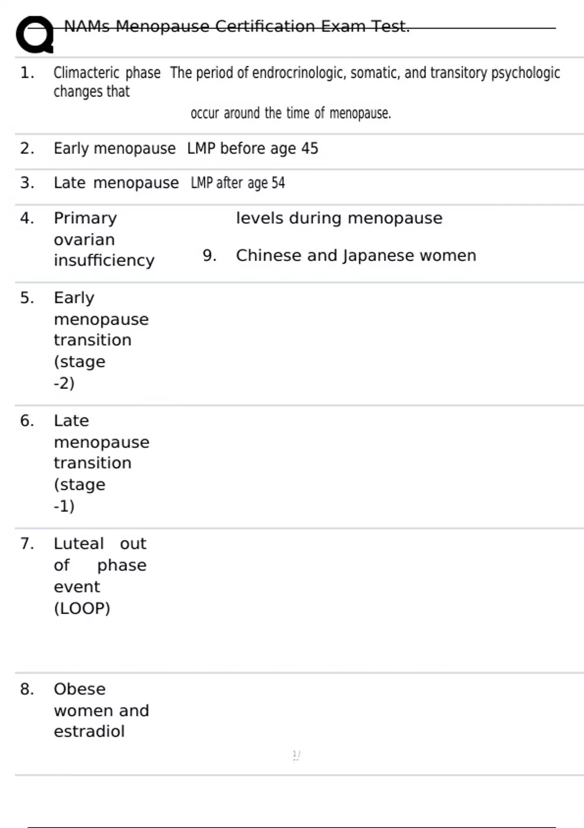 Exam (elaborations) Week 6 Menopause, Breast Conditions, and Osteoporosis Study Exam. Exam (elaborations) Menopause and Estrogen Replacement Therapy Study Test. Exam (elaborations) Schulling Test Bank Questions Menopause Study Test. Exam (elaborations) Menopause Review Practice Test. Exam (elaborations) Menopause Therapeutics Final Exam.