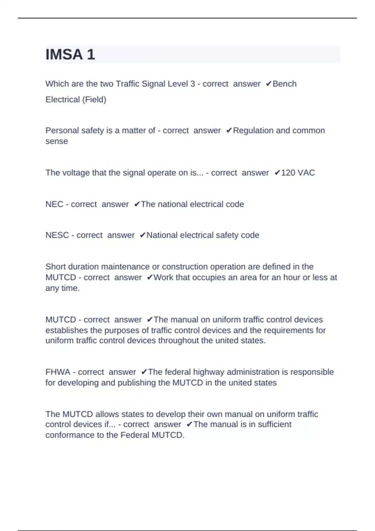 1 Exam (elaborations) IMSA Signs & Markings I Question and answers verified to pass 2025 2 Exam (elaborations) Imsa #2 Question and answers rated A+ 2025 3 Exam (elaborations) IMSA 1 questions and answers verified 2024 4 Exam (elaborations) IMSA Field technician Level I Practice Question and answers correctly solved 2025 5 Exam (elaborations) I