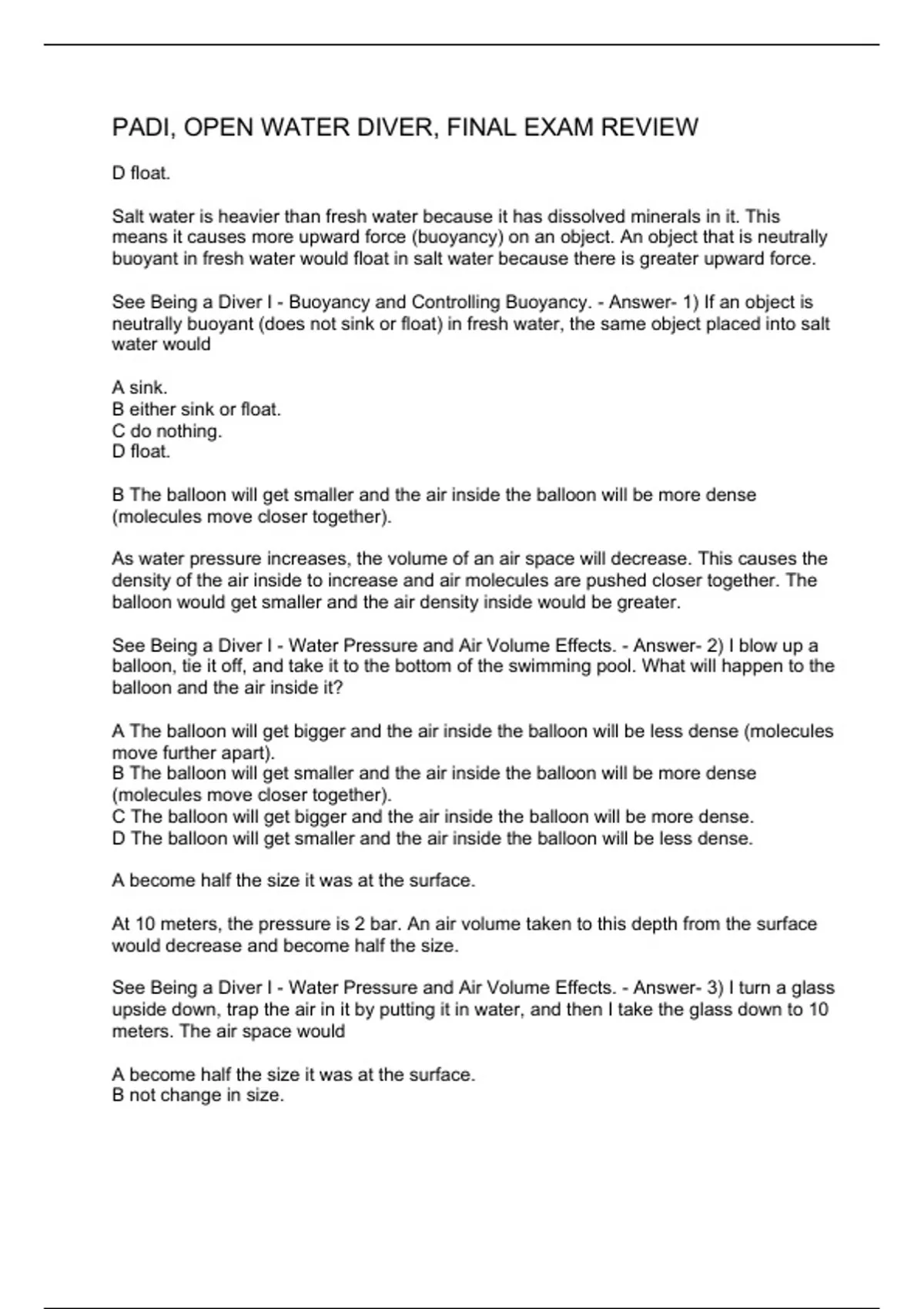 PADI FINAL QUESTIONS AND ANSWERS 2 Exam (elaborations) PADI FINAL EXAM A QUESTIONS & ANSWERS 3 Exam (elaborations) PADI: ALTITUDE DIVING KNOWLEDGE REVIEW , PADI RDP TABLE AND ERDPML EXAM - IMPERIAL 4 PADI 16- TEACHING THE RDP , RDP - IDC PREASSESMENT ,RPD TABLE AND ERDPML QUIZ A 5 PADI - IDC RDP SS- CL QU