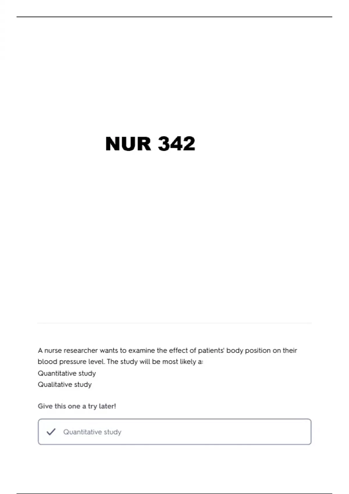 NUR 342 MIDTERM QUESTIONS AND VERIFIED ANSWERS