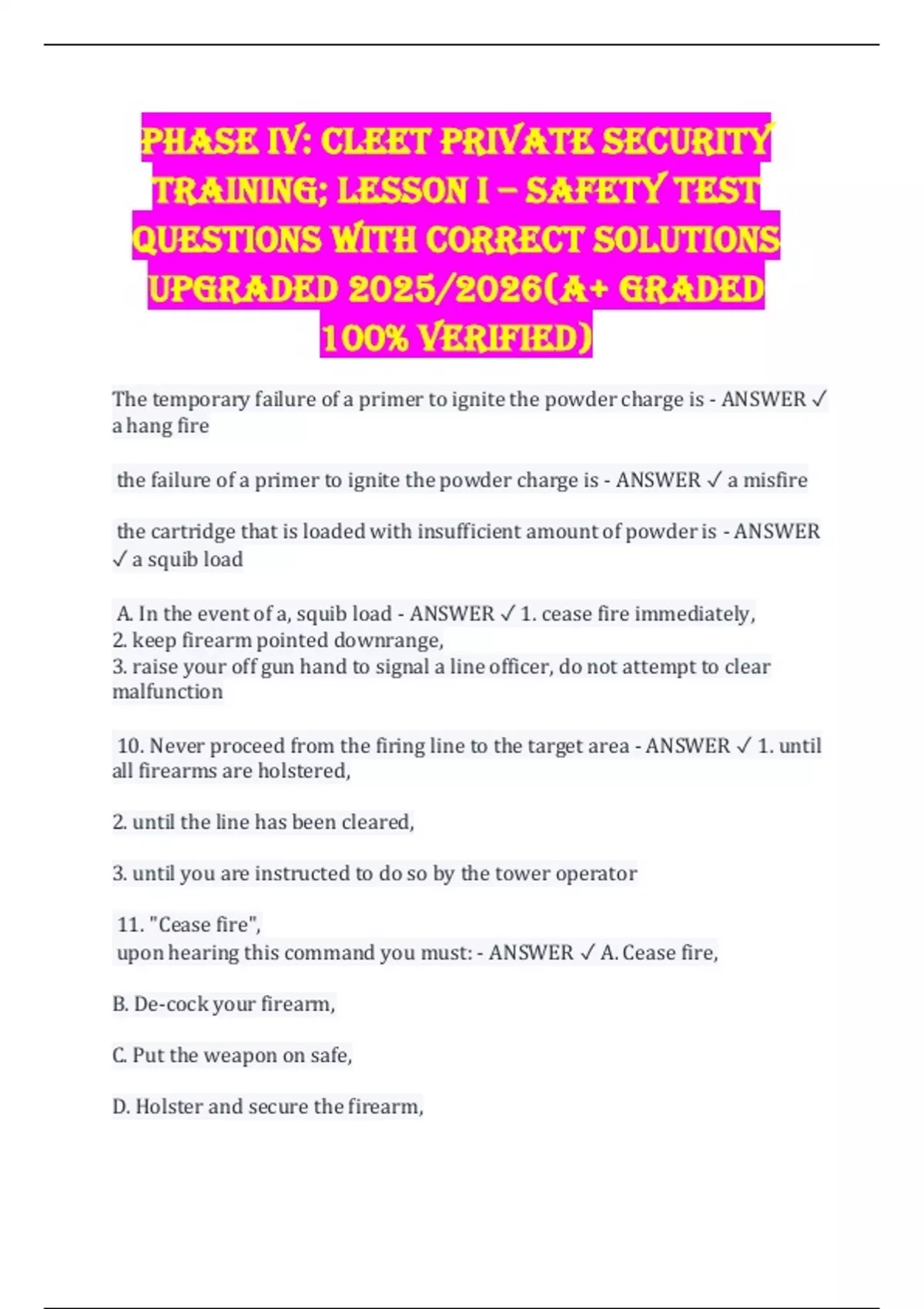 Phase IV: CLEET Private Security Training; Lesson I || CLEET Exam Questions and Correct Answers || CLEET FINAL Exam Questions and Correct Answers || CLEET Oklahoma Phase I & II Unarmed Security Guard Test Questions with Correct Solutions Upgraded 2025/2026(A+ GRADED 100% VERIFIED)