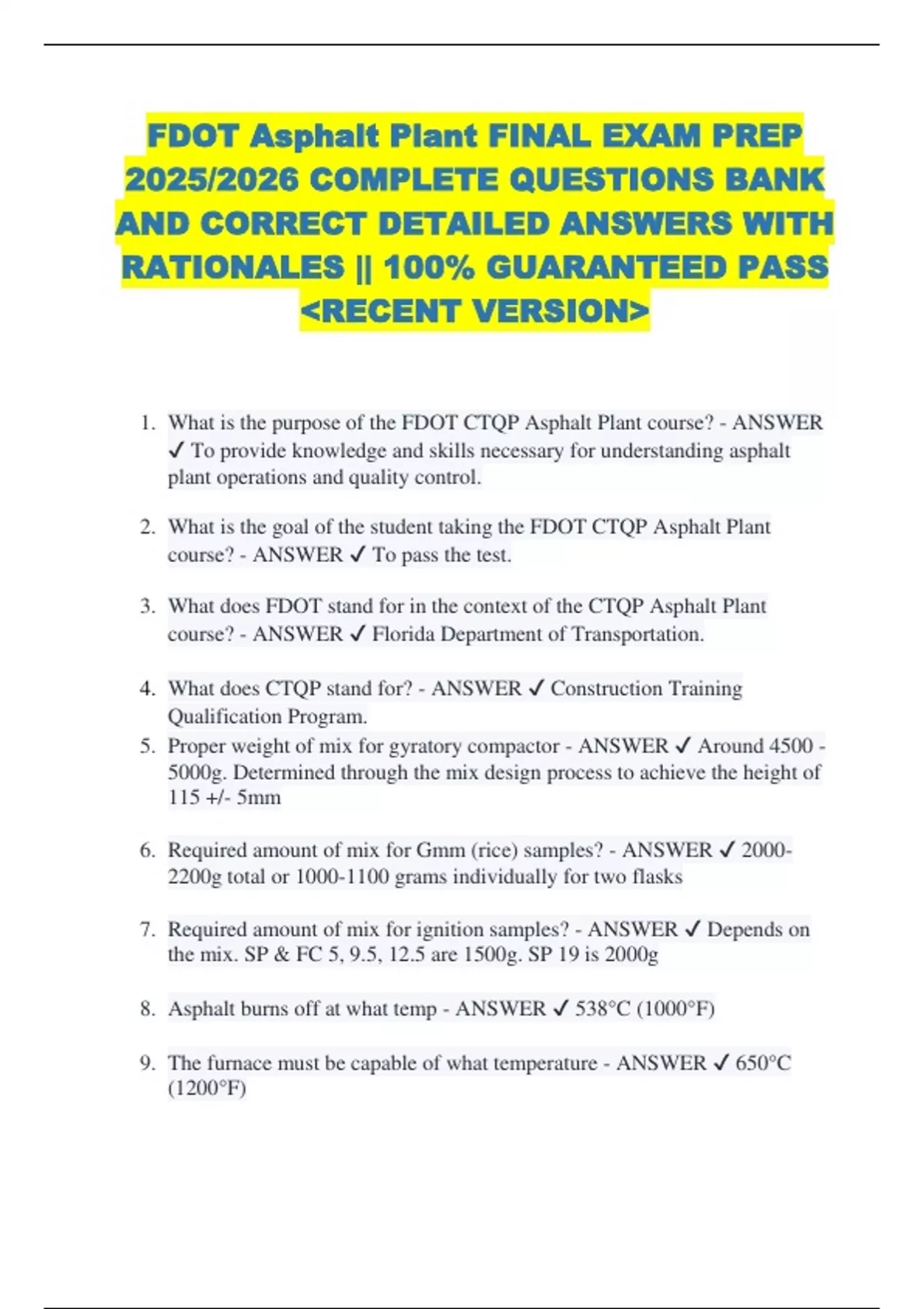 FDOT Asphalt Paving Level 1 & 2 EXAM PREP || FDOT Asphalt Plant FINAL EXAM PREP || FDOT Earthwork Level 1 & 2 EXAM PREP || FDOT Final Estimates Level 1 & 2 EXAM PREP 2025/2026 COMPLETE QUESTIONS BANK AND CORRECT DETAILED ANSWERS WITH RATIONALES || 100% GUARANTEED PASS RECENT VERSION