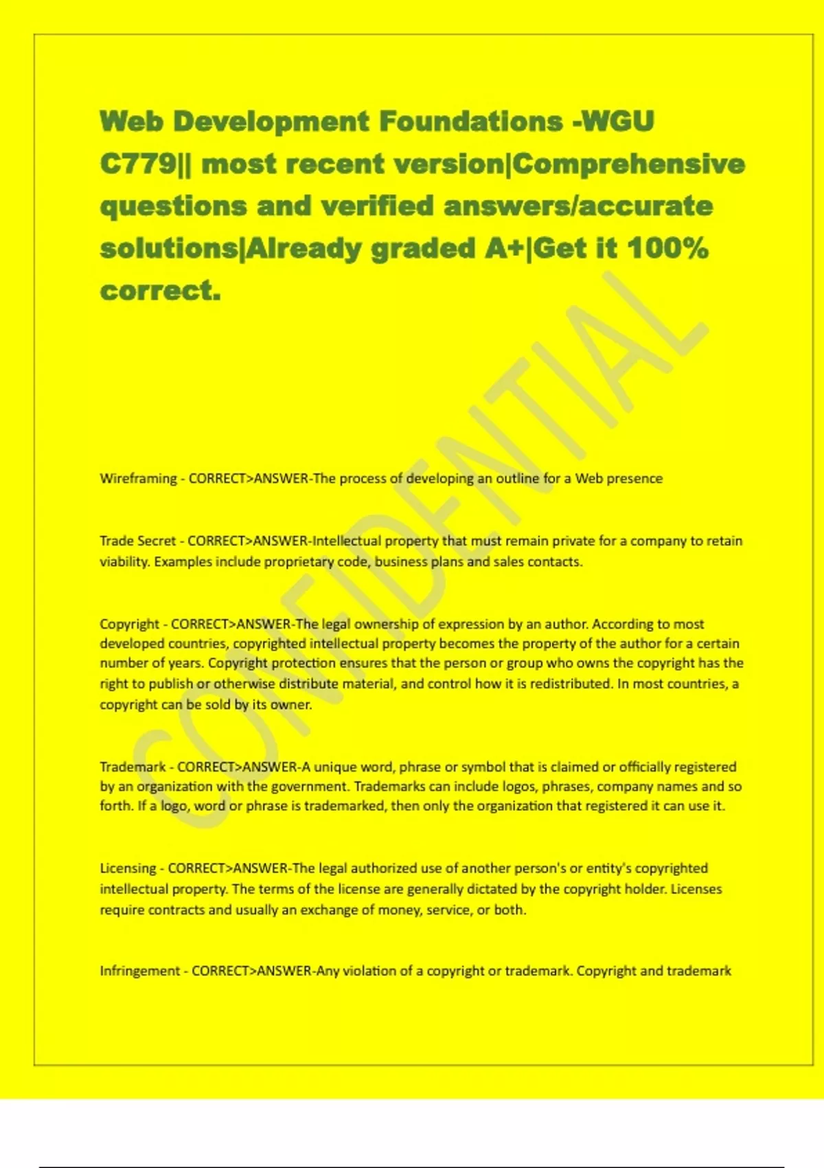 WGU C777 Web Development Applications Complete Study Guide 250 Questions with Verified Answers