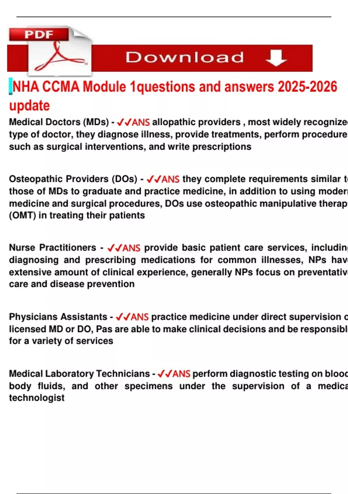 NHA CCMA Module(1,2,3,4,5,6,7,8,9and 10) questions and answers update 100% verified exams