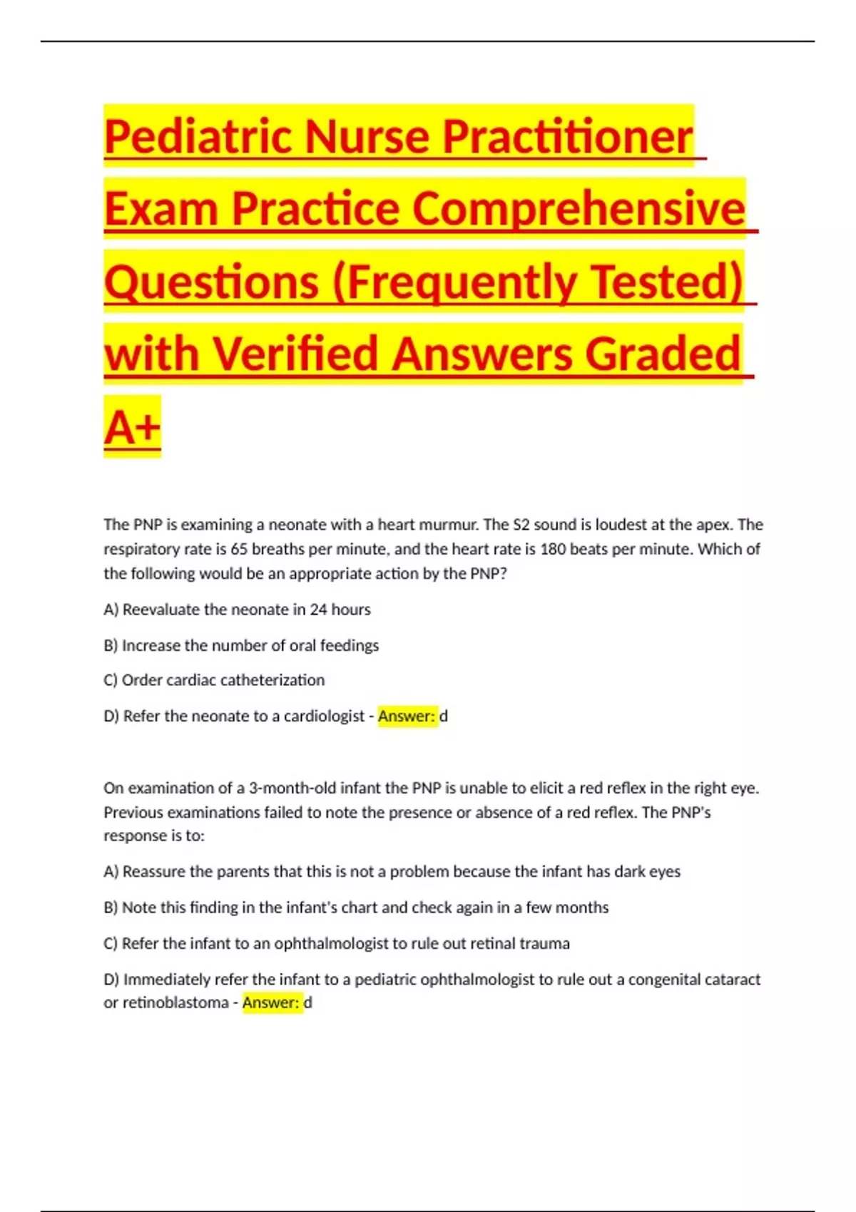 Pediatric Primary Care PNCB 1 Comprehensive Questions (Frequently Tested) with Verified Answers Graded A Package Deal