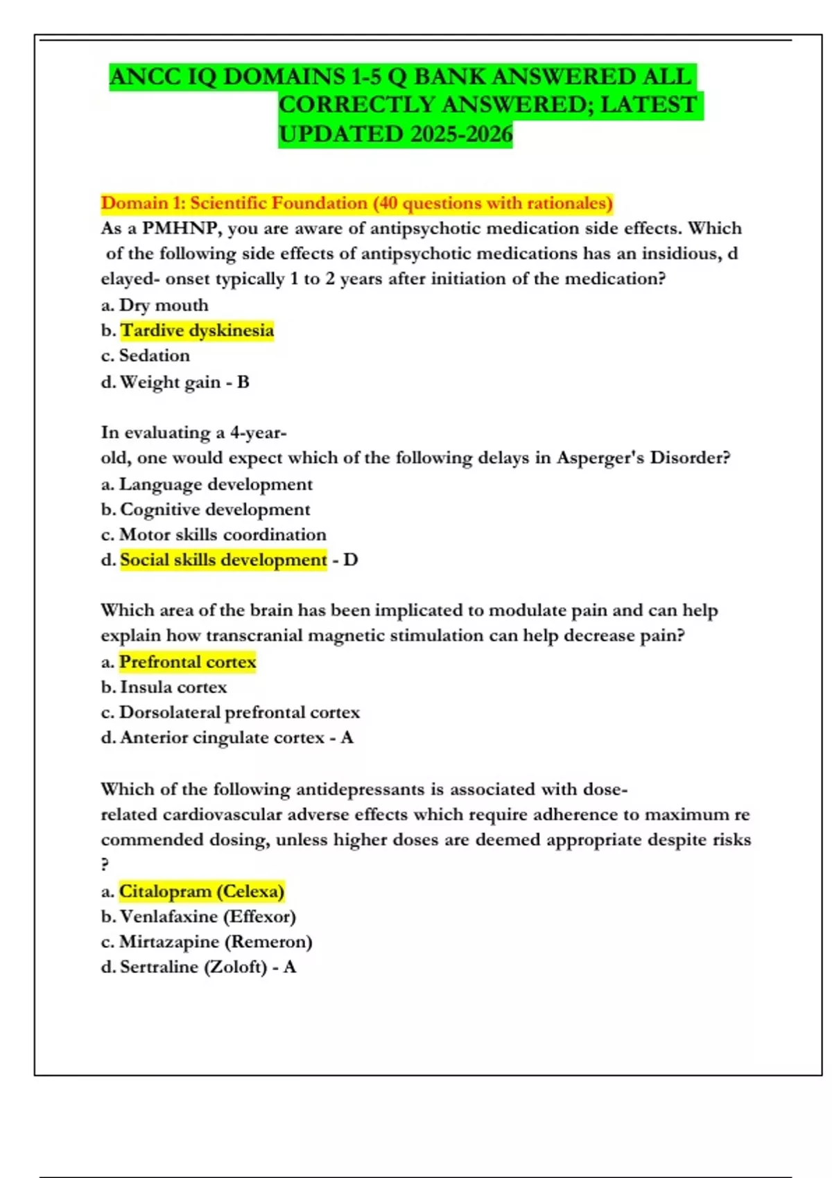 Package deal for ANCC IQ Domain Exam Questions With 100% Correct And Verified Answers (Latest Update)